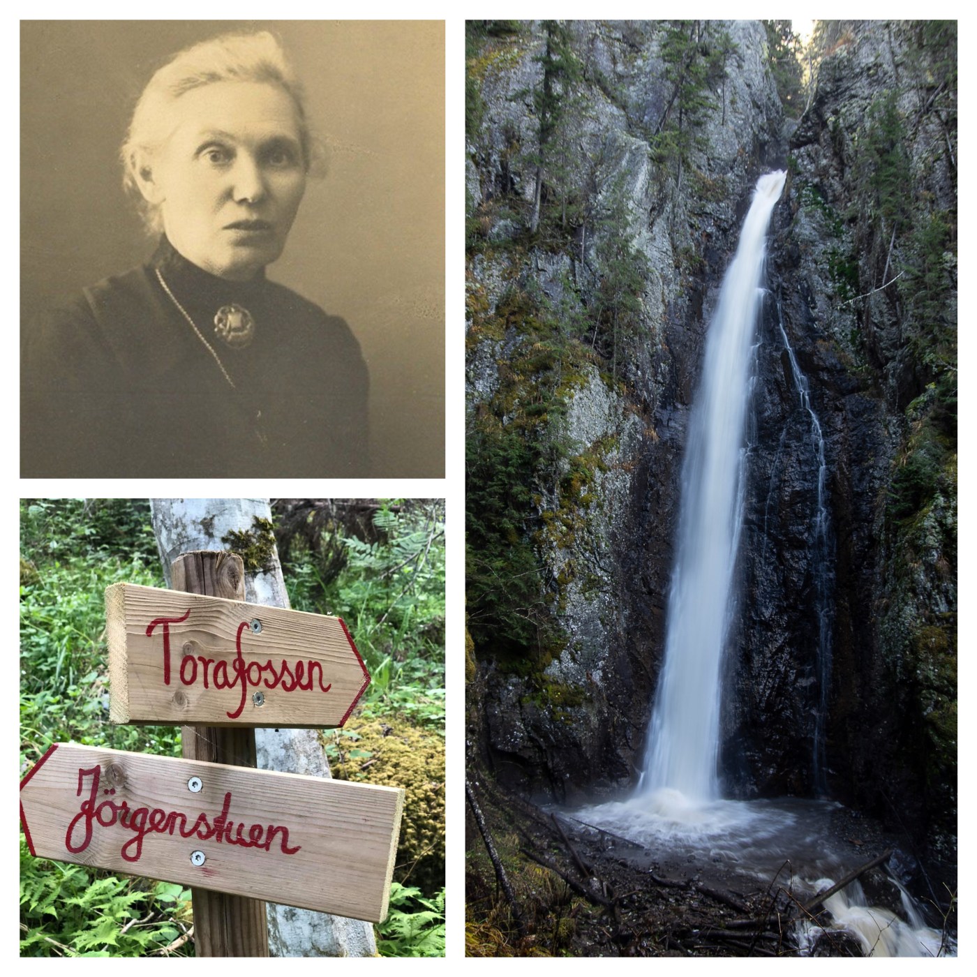The cliff where she fell had a waterfall, which was given the name Torafossen after her (also called Høgfossen). Torafossen is approximately 28 meters high and is located in Skolmbygda between the farms Jørgenstuen and Skolmen near the West Torpa road in Nordre Land, Norway (Source: Geocaching – Torafossen i Nordre Land).