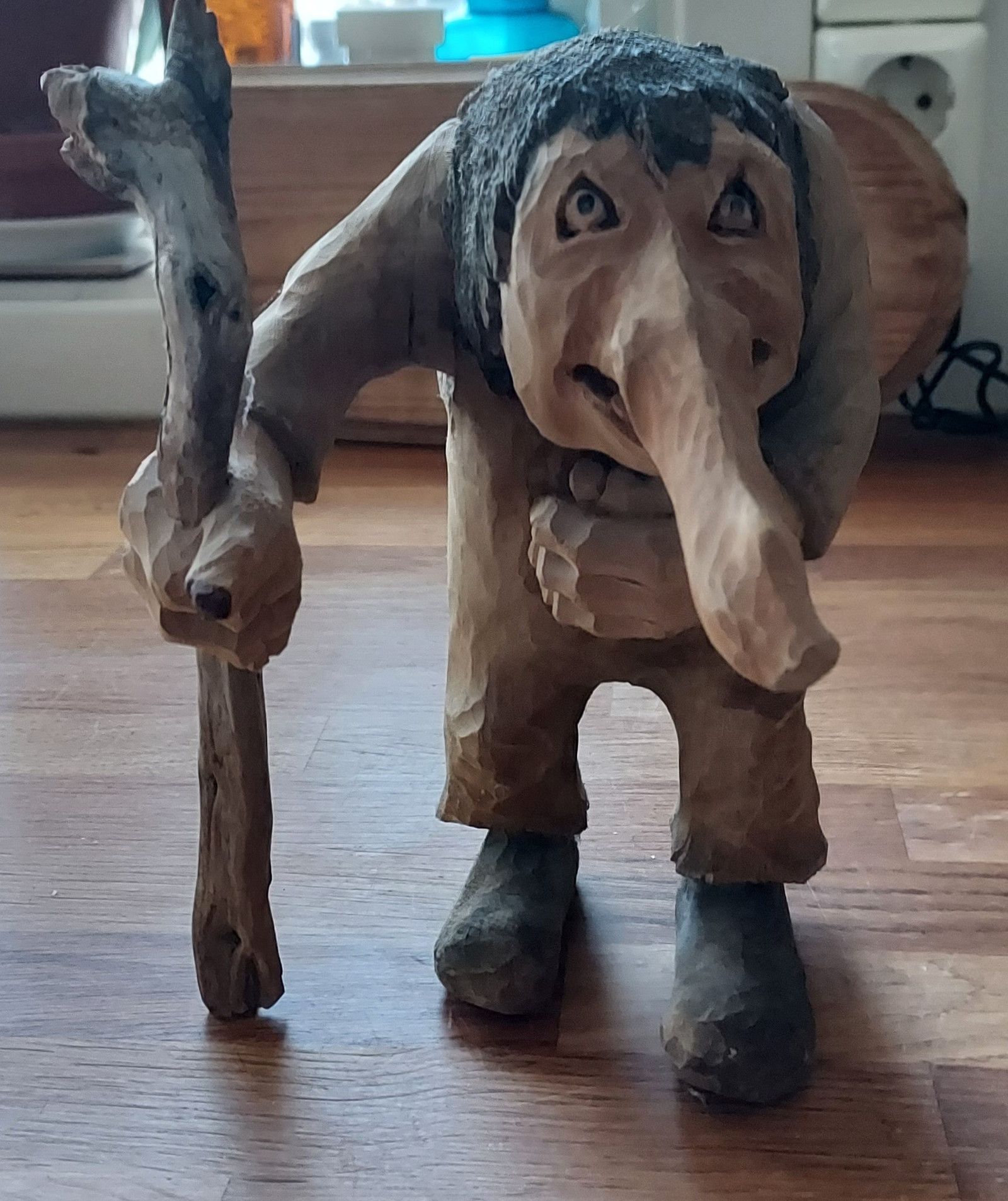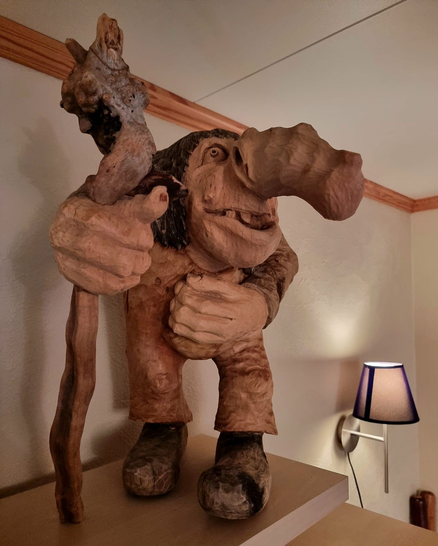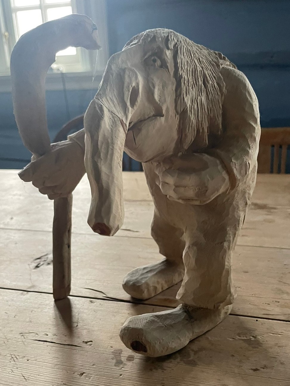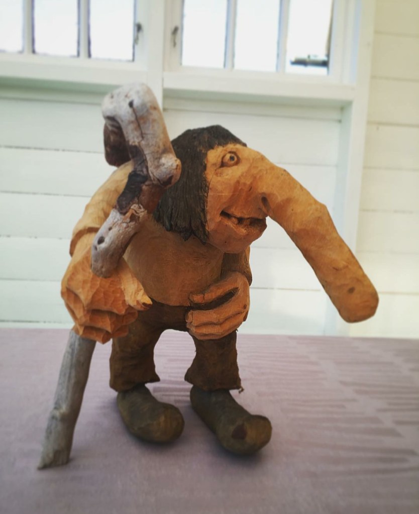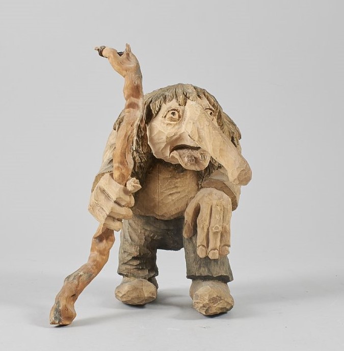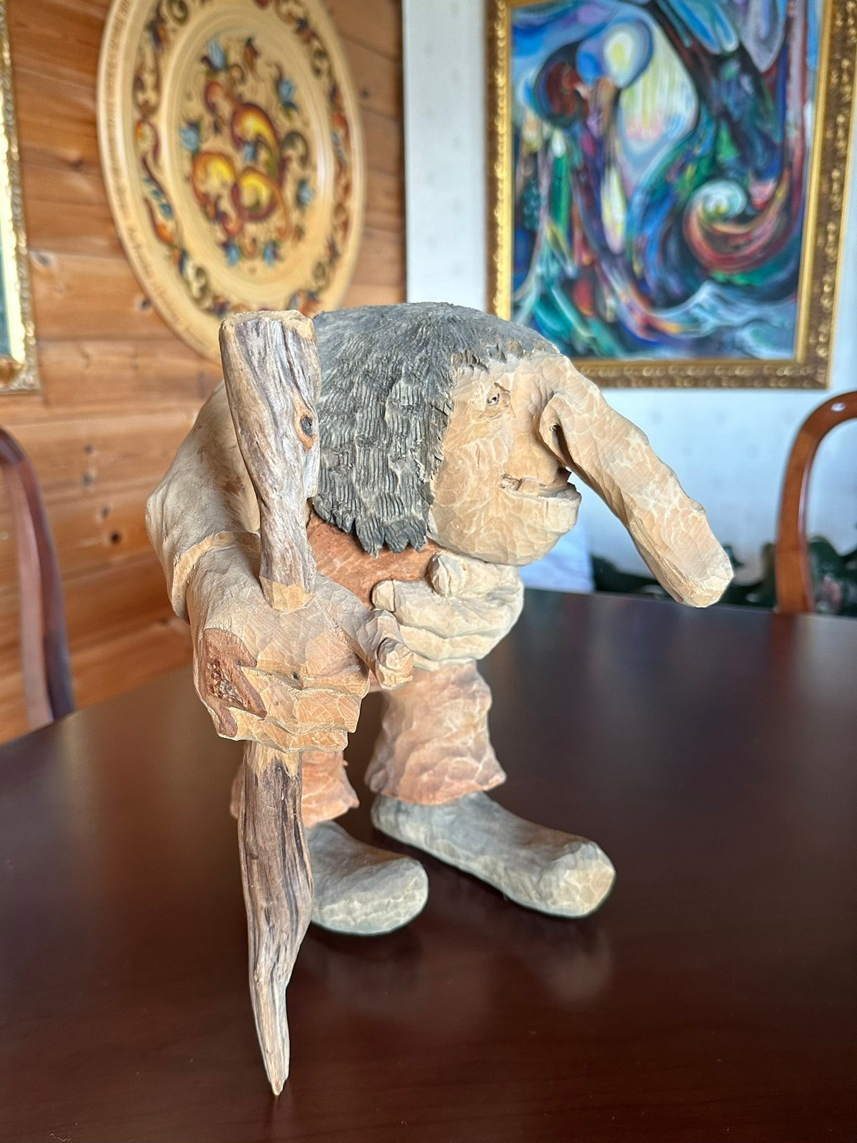 “I’m a carpenter, woodcarving is something I do in the winter. When I started carving troll figures, it was not possible to make a living from this alone. Since then I have been doing this on a larger scale for many years now, but only in the winter. I receive such large orders for these wooden figures that I don’t have the strength to fulfill them all. I have a regular delivery of trolls to three businesses in Norway. Two of these are located in Dovre and another in Møre and Romsdal. If the desire to work is good, and it usually is, I can carve around 200 trolls during the winter. If I were to fulfill all the orders I receive, I wouldn’t be able to do anything else.” (Asbjørn Rånå, 1977).