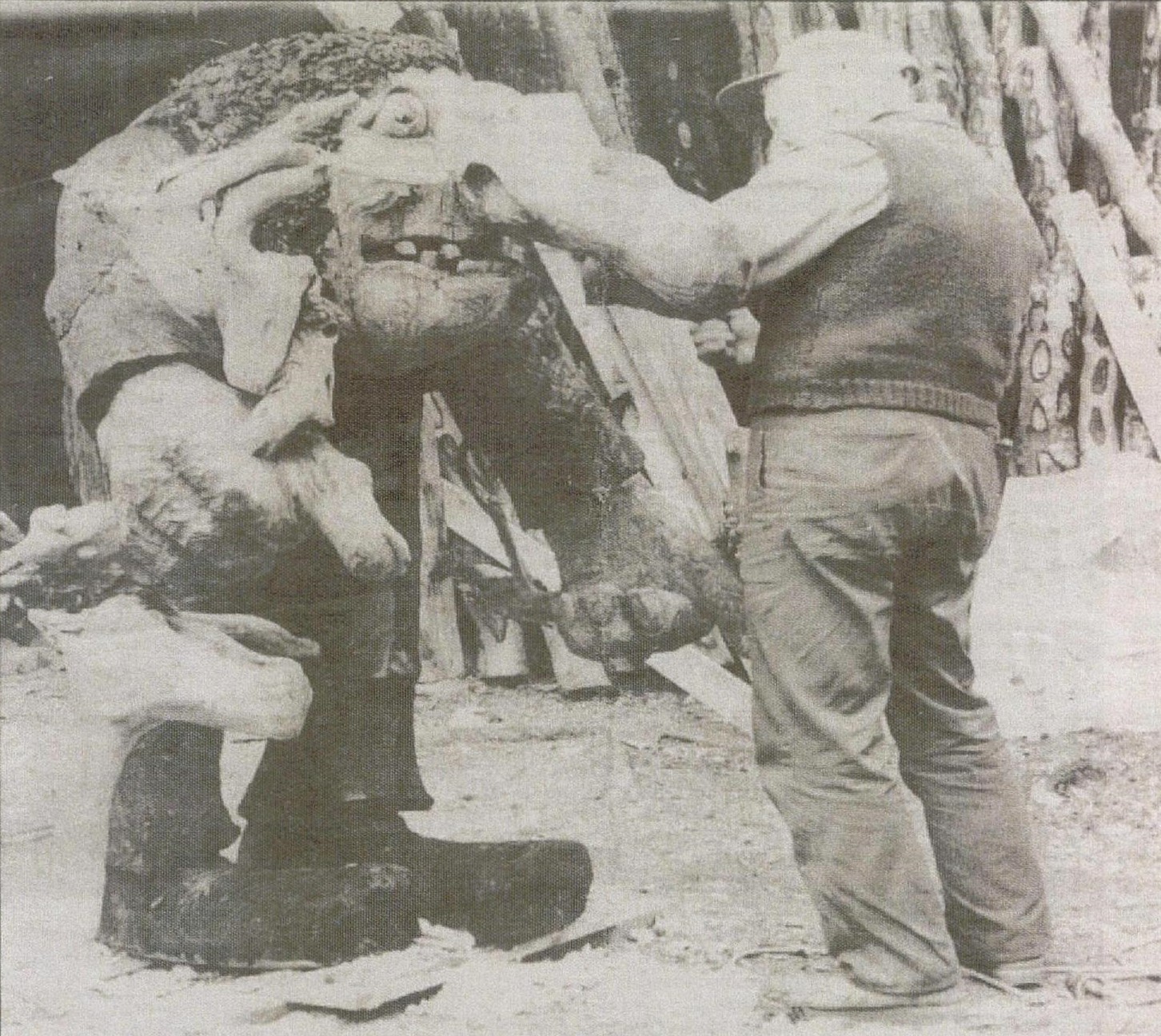 Asbjørn was known to create large human size trolls out of wood. In the Winter of 1981 he made a giant troll that was placed outside Dovregubbens hall in Dovre, where the trolls originally came from. He also created another that was placed in Dombas.