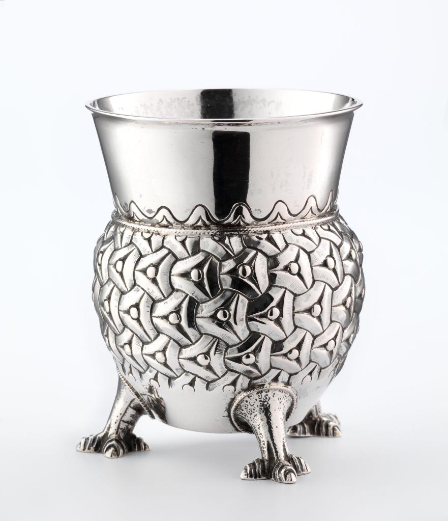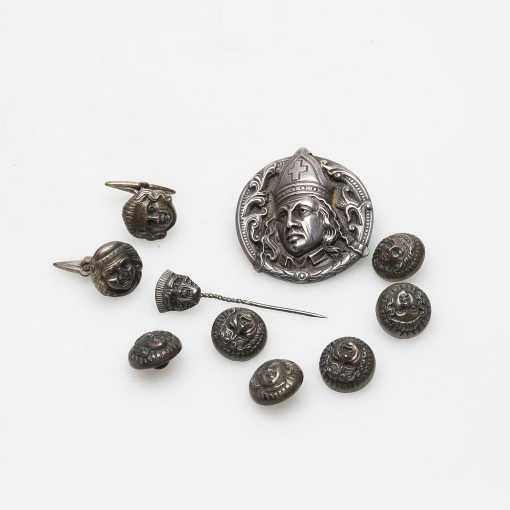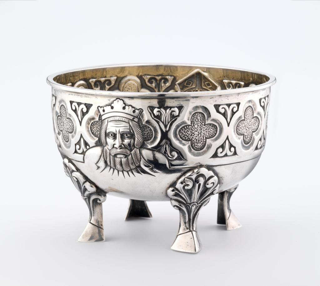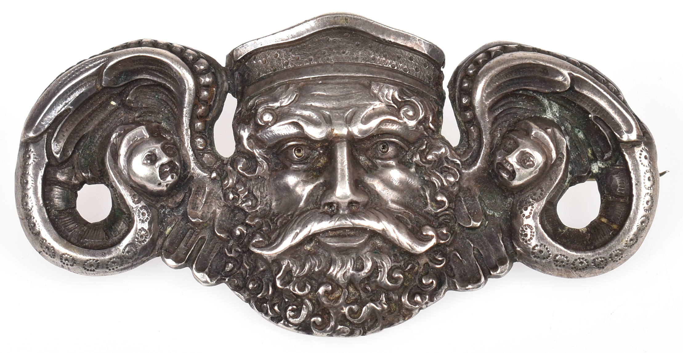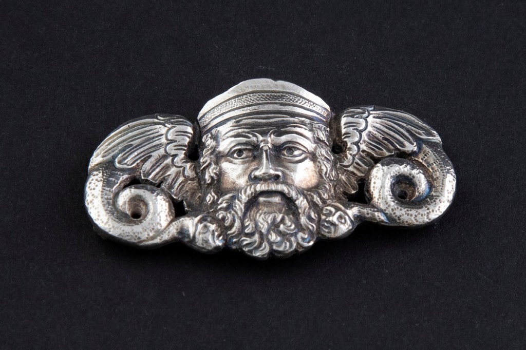 Henrik Bertram Møller was born in Trondheim on 11 October 1858. He was the fourth generation of a goldsmith family that took root in Trondheim in 1770. The restoration of Trondheim’s Nidaros Cathedral, which began in 1869, was an important source of inspiration for decorative artists by the late 19th century, and especially for Møller. After 1 1/2 years at sea at the age of 14, he started as a goldsmith’s apprentice in his mother’s workshop (Jacob A. Møller’s Widow). He took the Svenneprøven (a traditional final examination that is taken in vocational and craft subjects) in Copenhagen in 1879. In the late 1870s, he learned corpus work and chiselling from Bernhard Hertz in Copenhagen; in the evenings he studied modeling, drawing, etc. at the art academy. From Copenhagen he went to Vienna to learn more, and he was also in New York for 1 1/2 years before settling down for good in Trondheim in 1884. In 1890, he established himself as a silver worker, sieve maker and model maker.