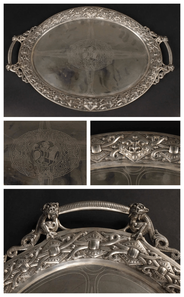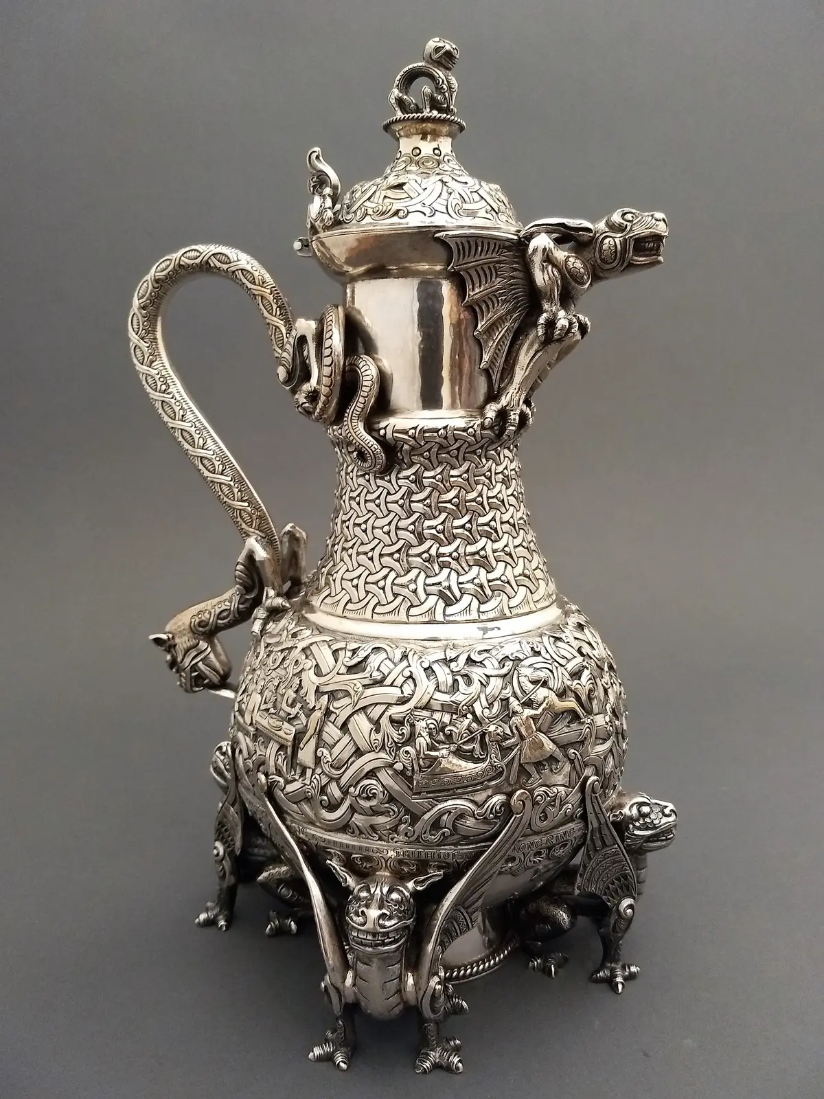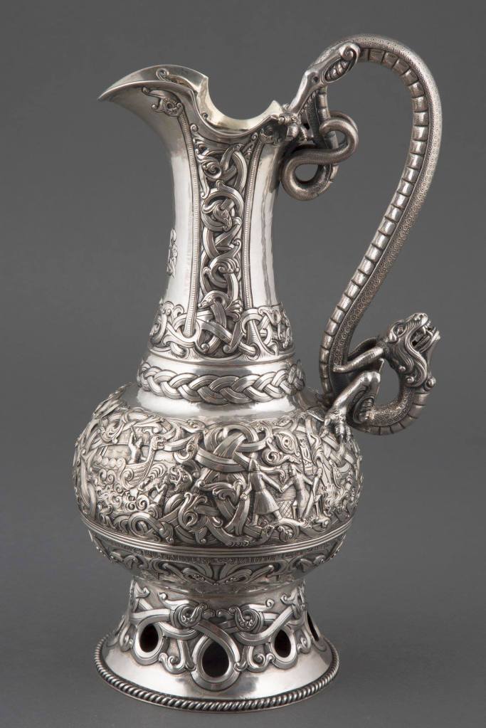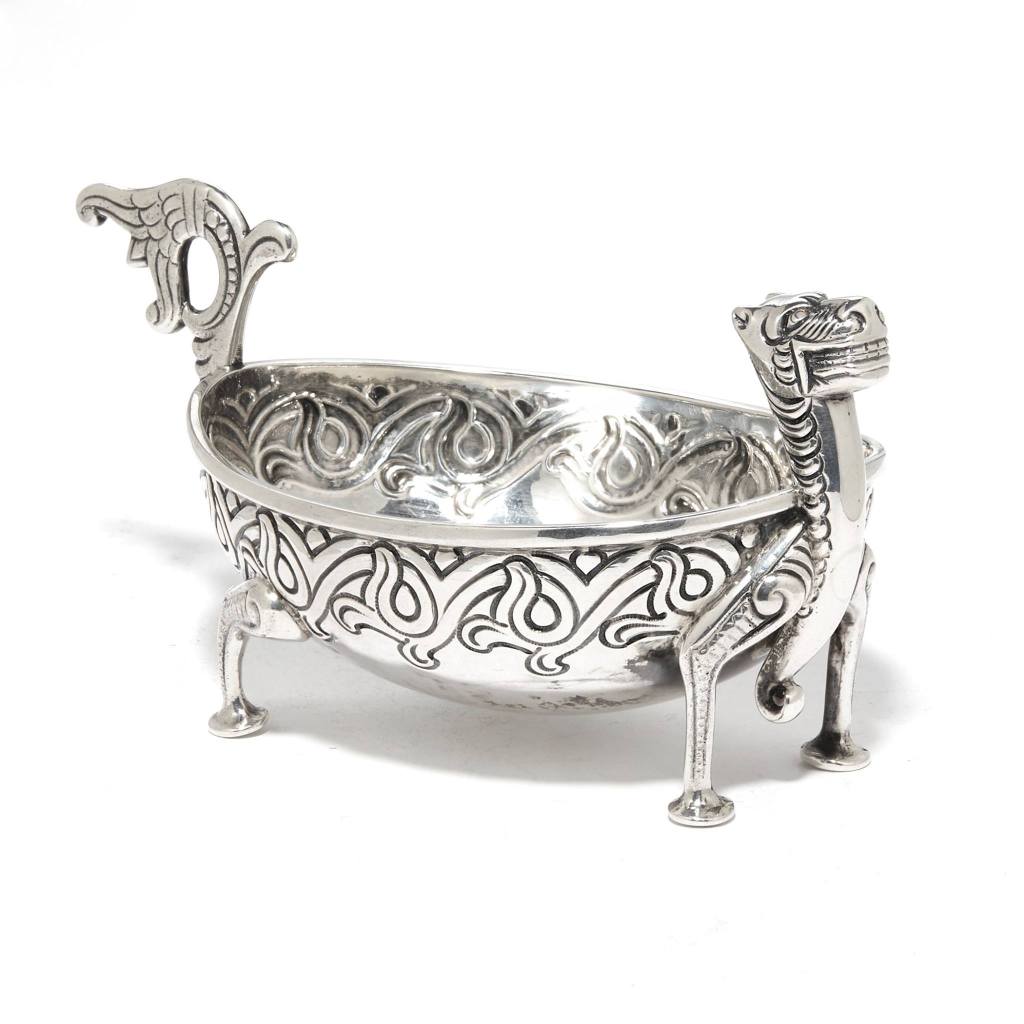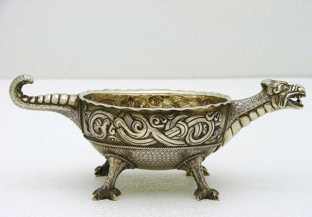Henrik Møller was a Norwegian Goldsmith who specialised in making fine silver objects in dragestil (dragon style) and tendril ornamentation, often with elements of old Norse motifs from Nidaros Cathedral. He targeted the tourist market and quickly became internationally known. Magnificent pieces were ordered from rich customers and royalty around the world.