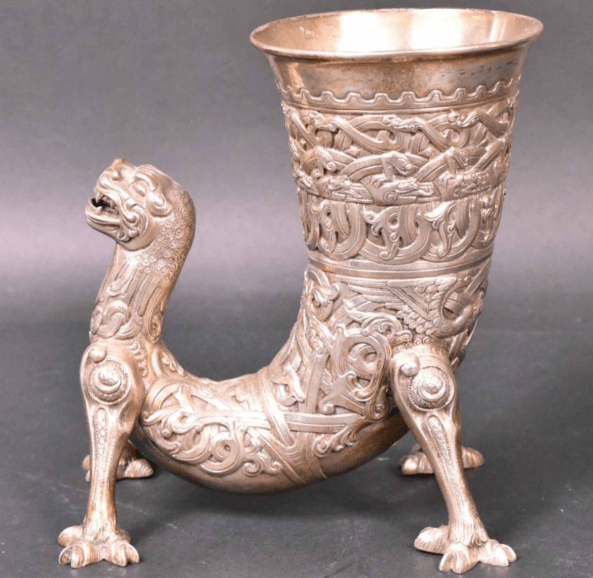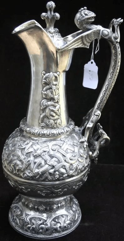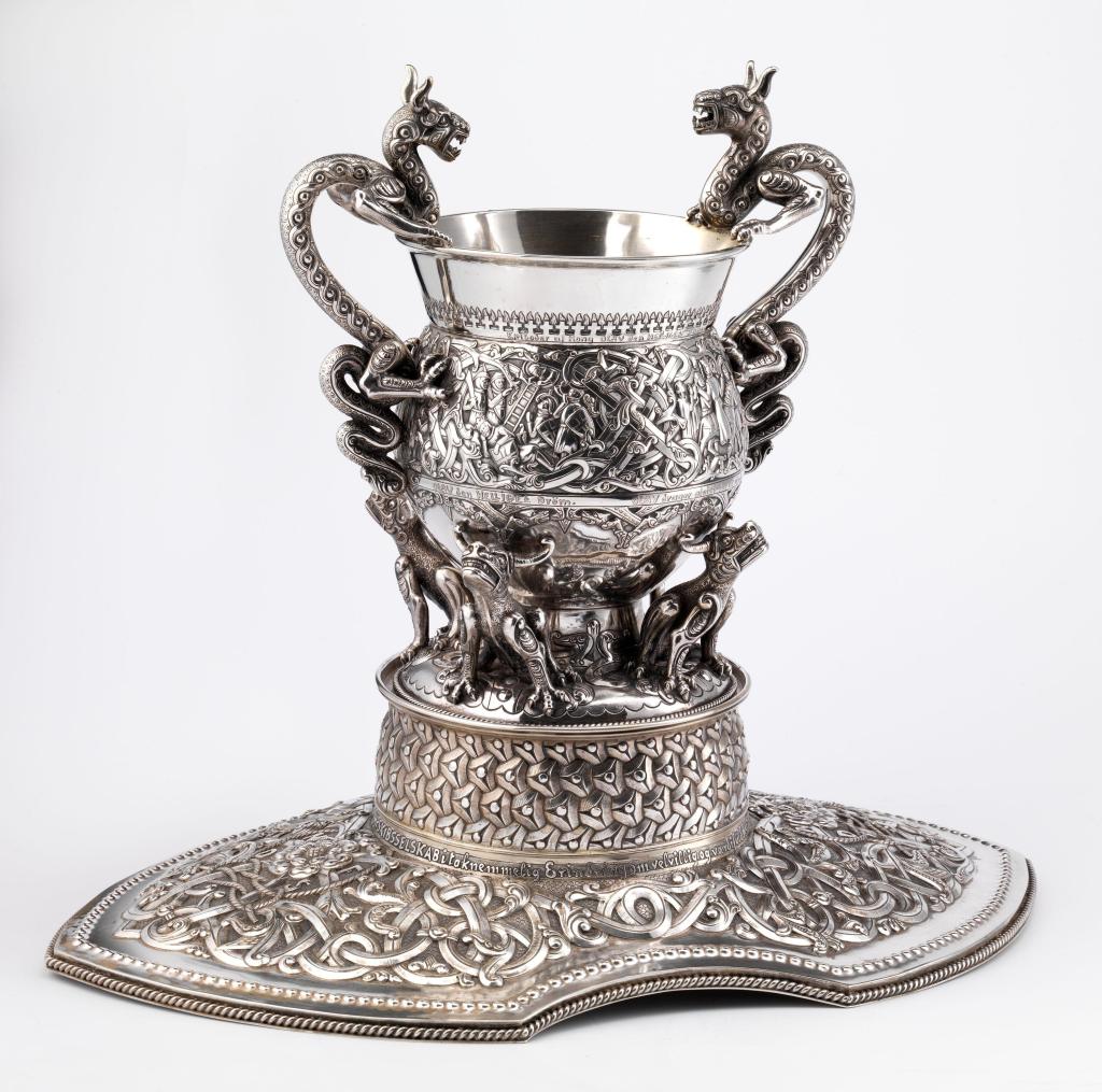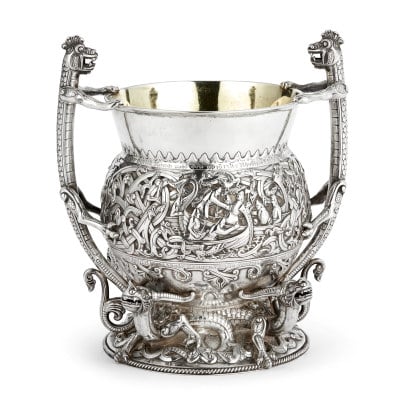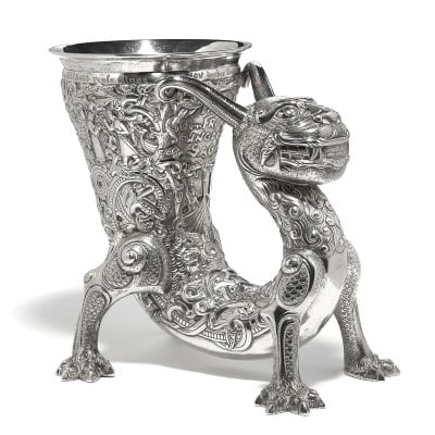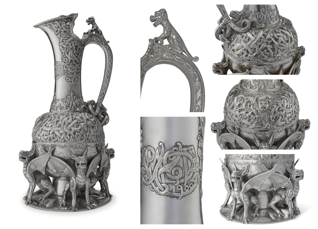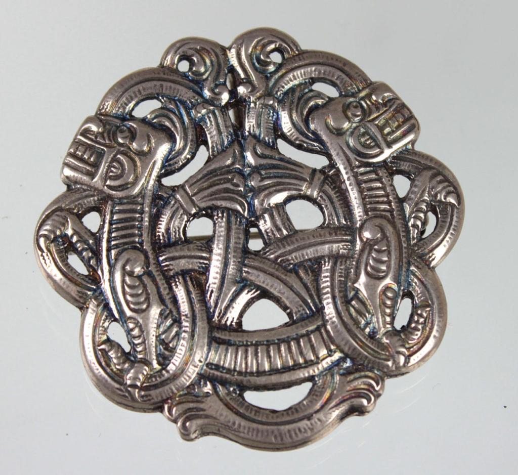 Henrik Møller was a Norwegian Goldsmith who specialised in making fine silver objects in dragestil (dragon style) and tendril ornamentation, often with elements of old Norse motifs from Nidaros Cathedral. He targeted the tourist market and quickly became internationally known. Magnificent pieces were ordered from rich customers and royalty around the world.