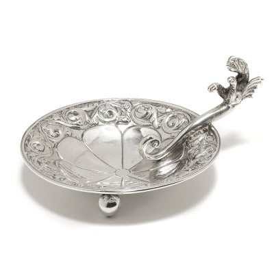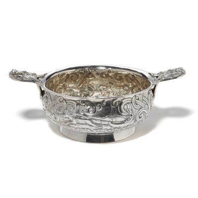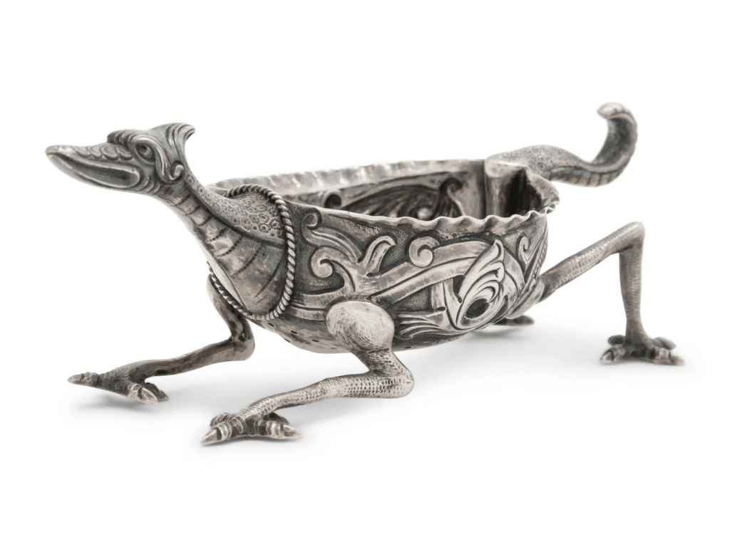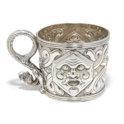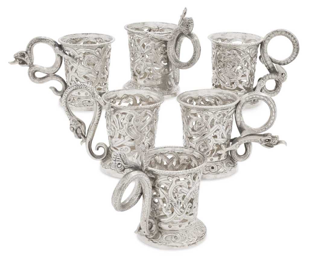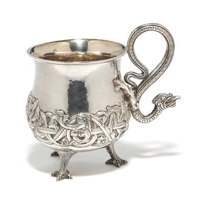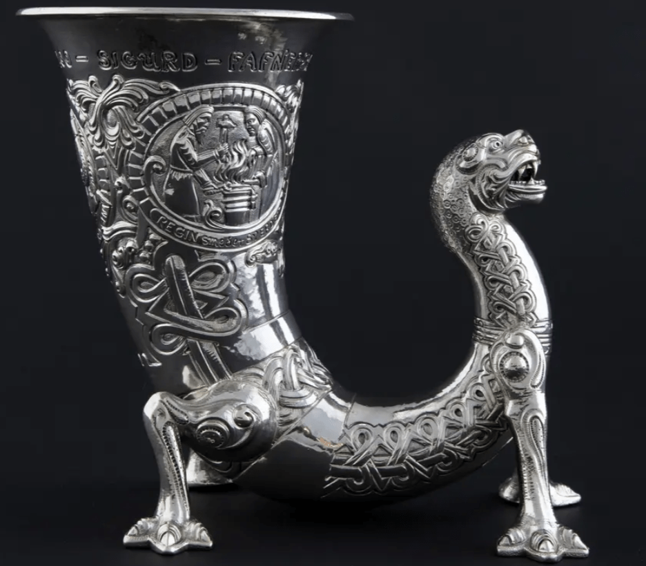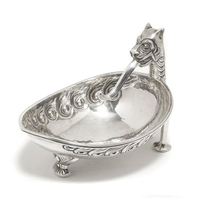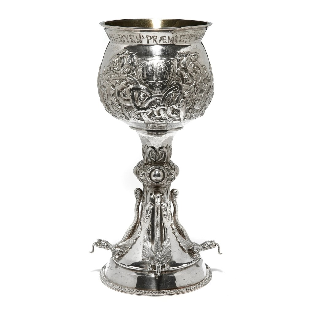 Henrik Møller was a Norwegian Goldsmith who specialised in making fine silver objects in dragestil (dragon style) and tendril ornamentation, often with elements of old Norse motifs from Nidaros Cathedral. He targeted the tourist market and quickly became internationally known. Magnificent pieces were ordered from rich customers and royalty around the world.