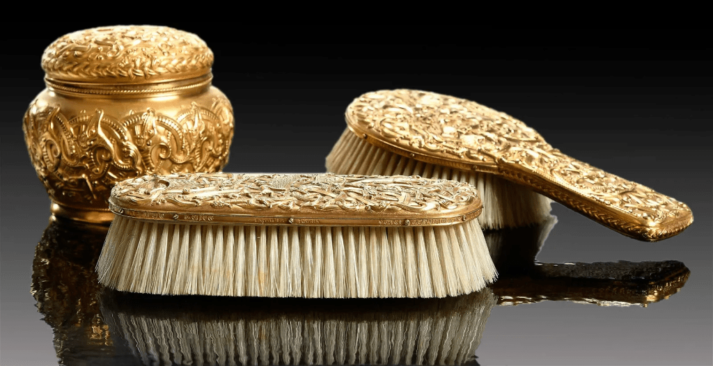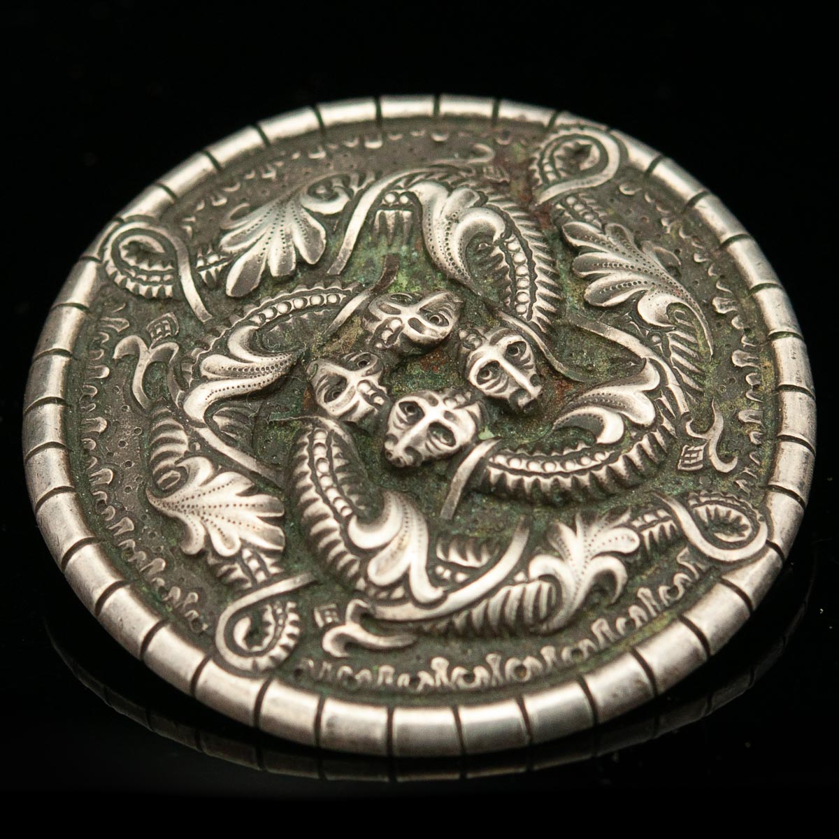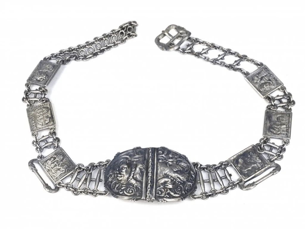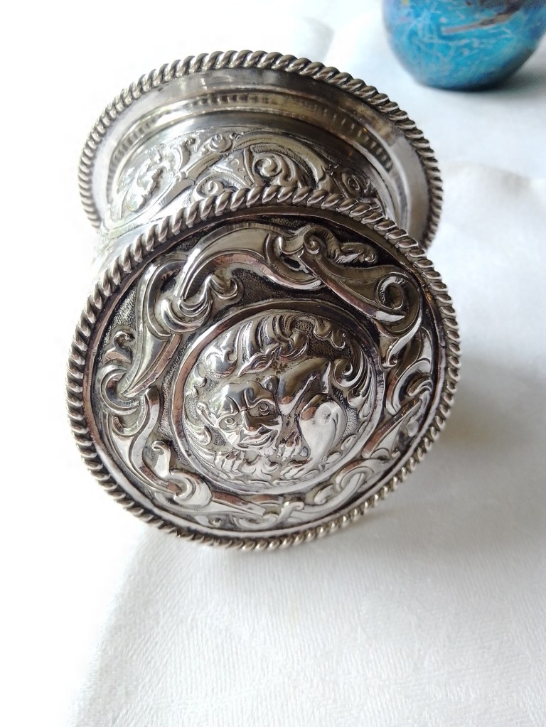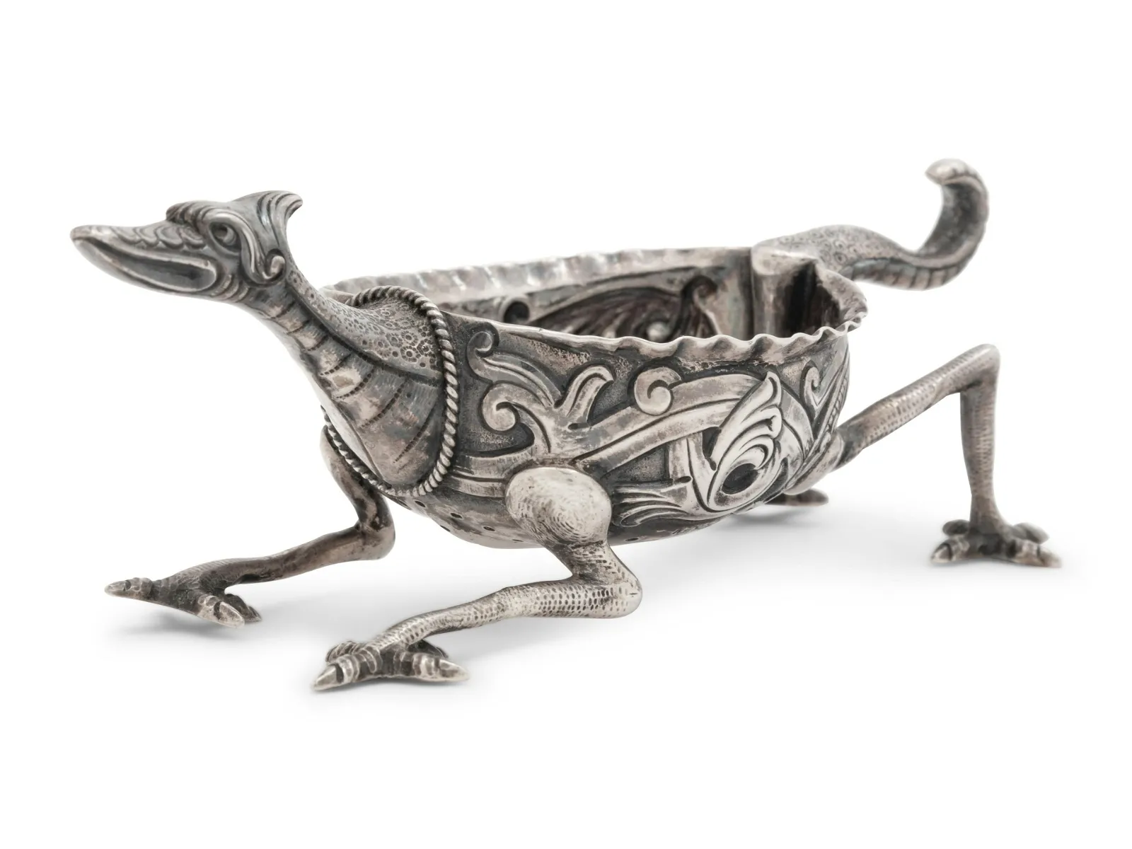 The inscriptions on this silver box can be translated to: “The knight rescues the lion from the dragon. The lion thankfully accompanies the knight. The lion dies of sorrow on the knight’s grave.“