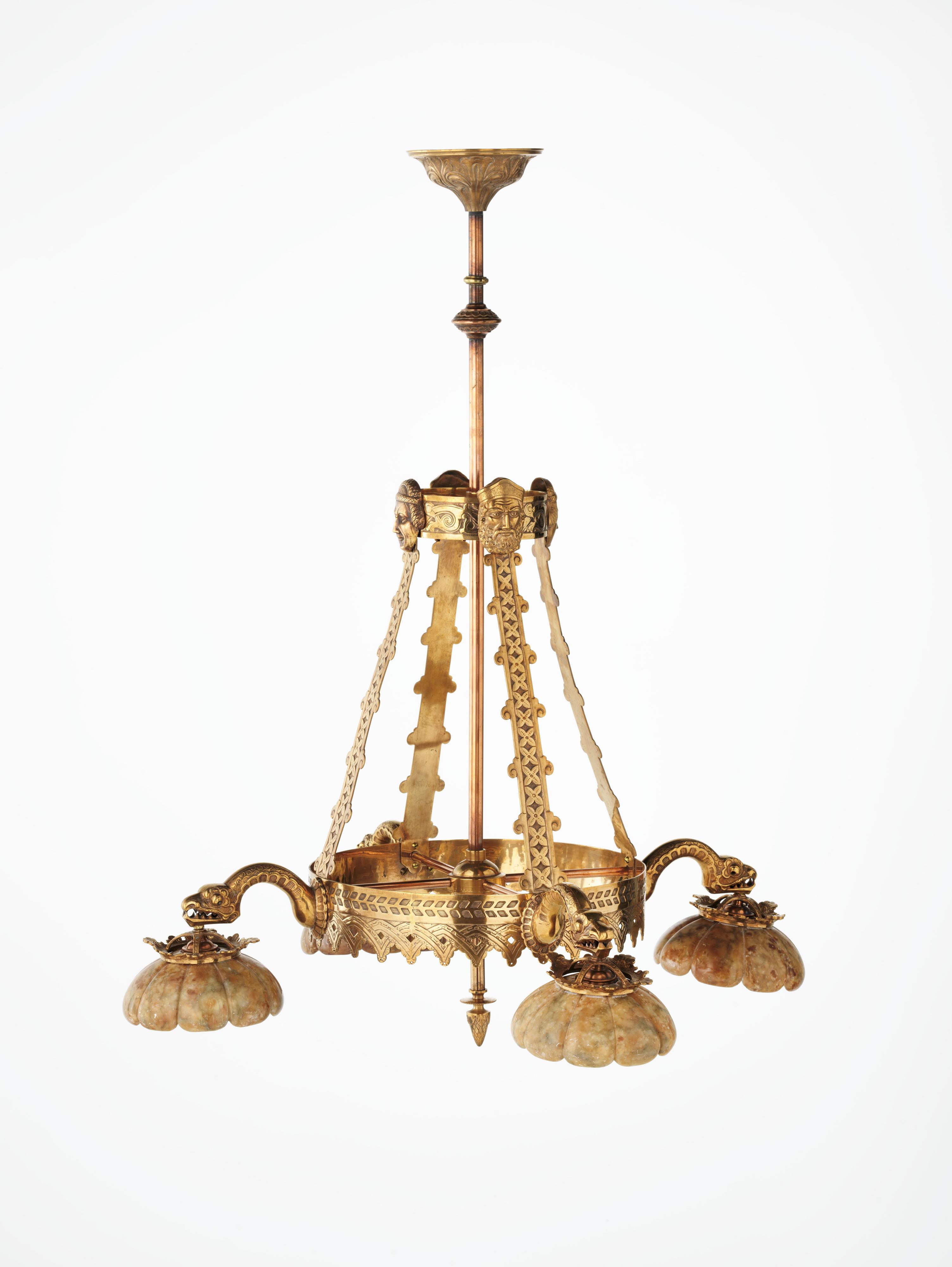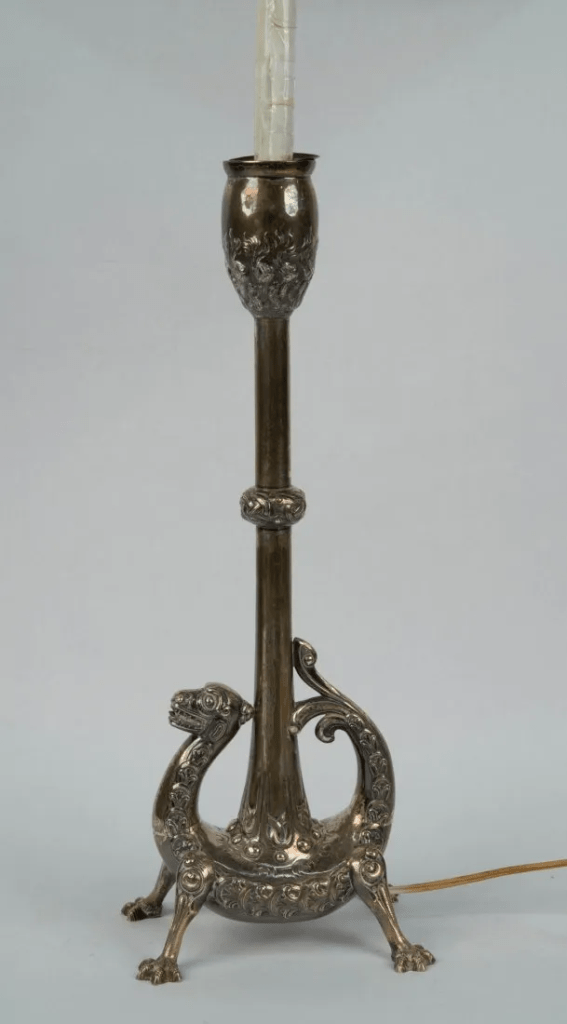 The production for the domestic market was less outlandish and grand. It included, among other things, a range of coffee and tea sets with dragon spouts and dragon handles. Mention should also be made of popular jewellery, belts and combs with motifs from Nidaros Cathedral. From 1900 until the First World War, he also ran Henrik Møller’s Metalware Factory; In 1902, 50 men worked at the factory at Elgeseter in Trondheim. Many kinds of products were produced here, from door knobs and furniture fittings to chandeliers and ship lamps. In 1906, Møller delivered all the altar equipment to the new Lademoen church.