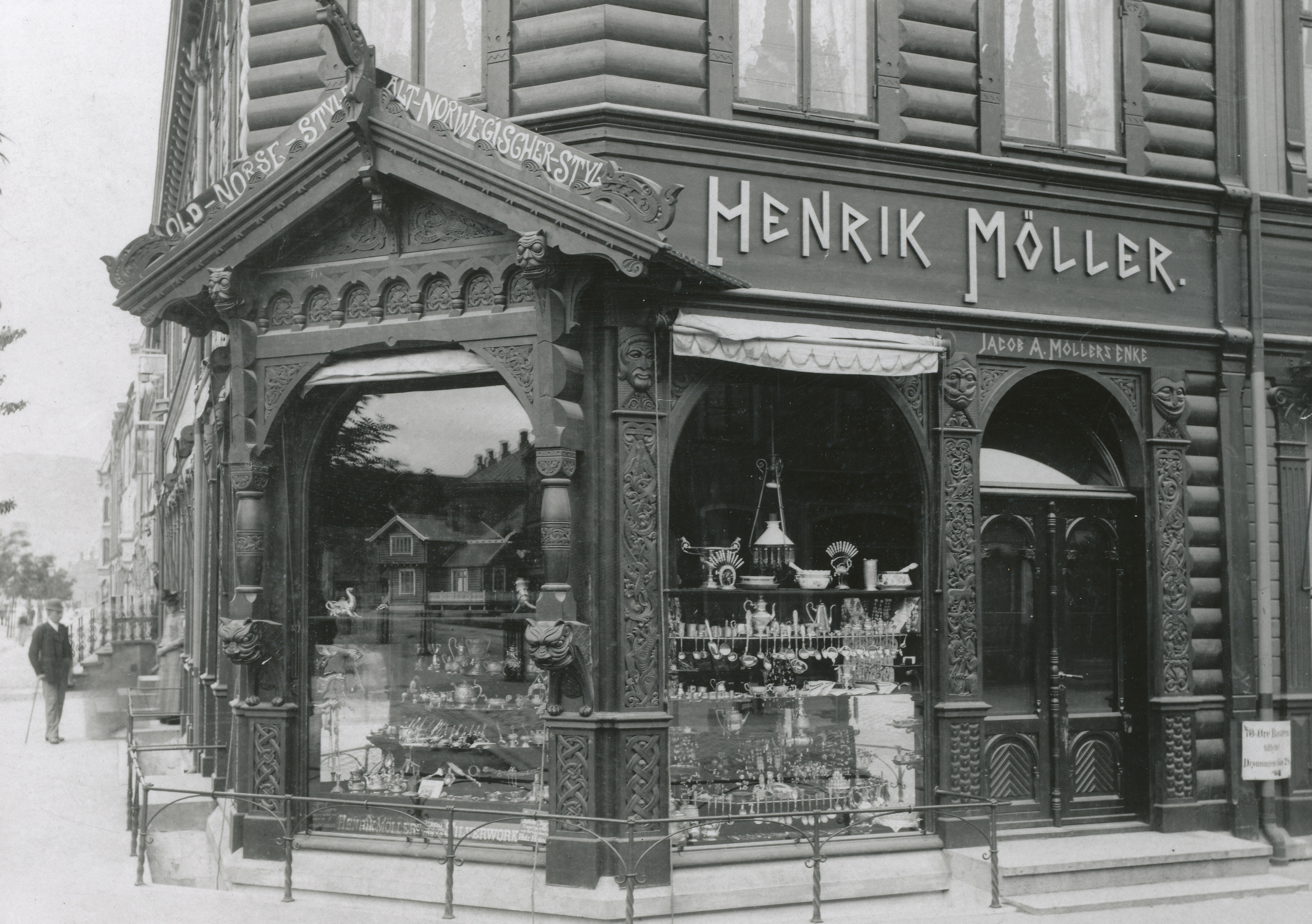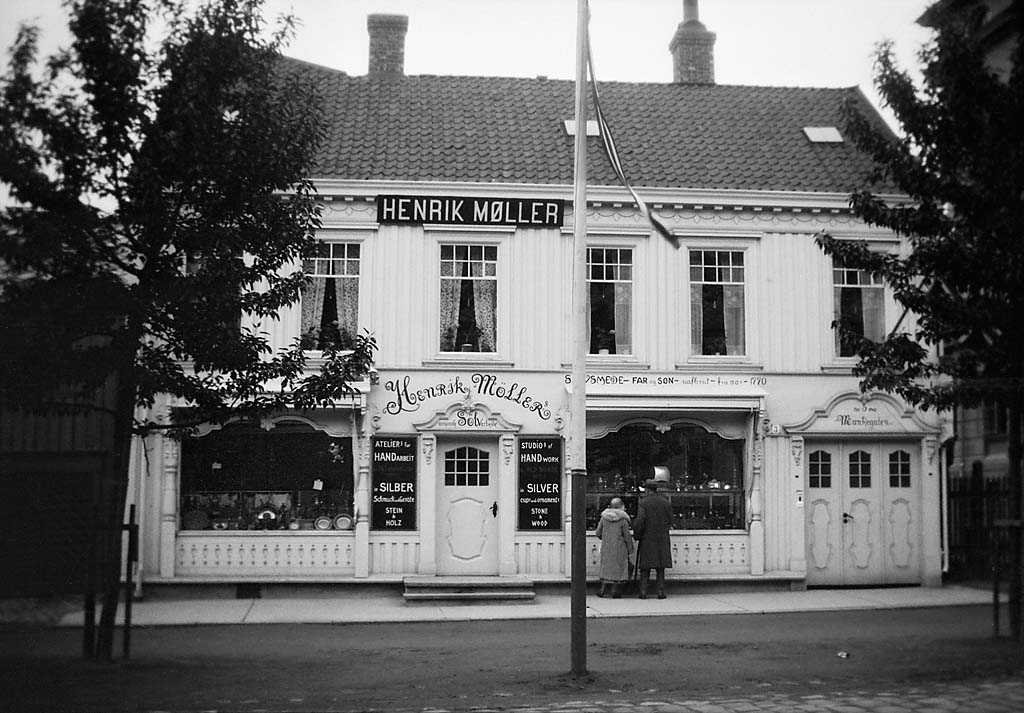 In the first years, Møller had his own display cases in his mother’s shop at Dronningens gate 28 in Trondheim. From 1892 he lived at no. 16 in the same street.