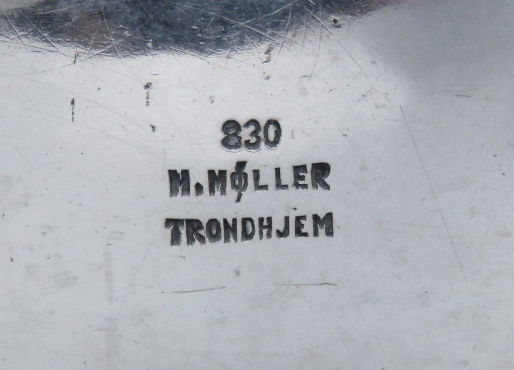 His work is stamped with the 830 Norwegian silver, Trondhjem and H. Møller: