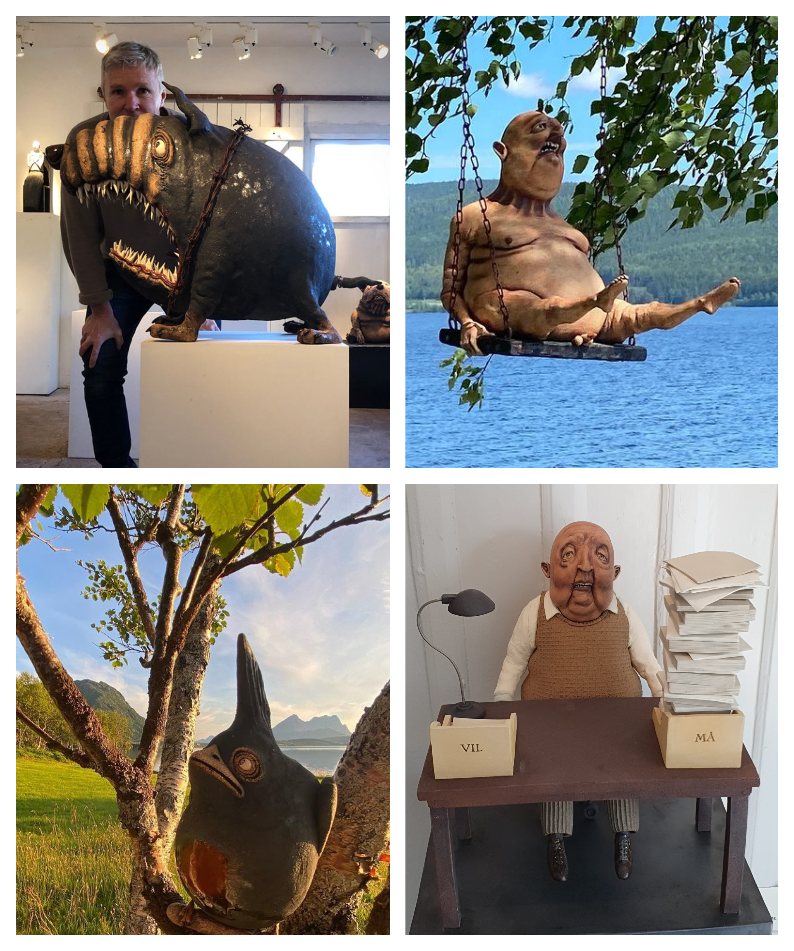 When creating his sculptures, he looks for the beauty in the ugly. Or the vulnerability of the grotesque. His sculptures reflect our vanity. One can imagine there must be many special thoughts in his head that allow him to think up such grotesque characters. According to Ole Martin, it is the advantage of having hereditary madness in his family (Source: Østlandets Blad).
