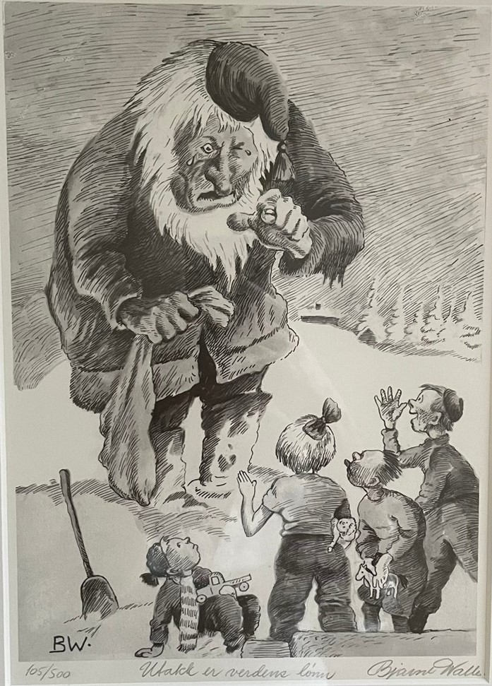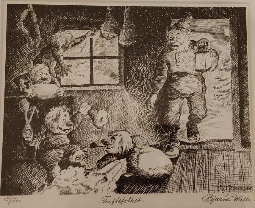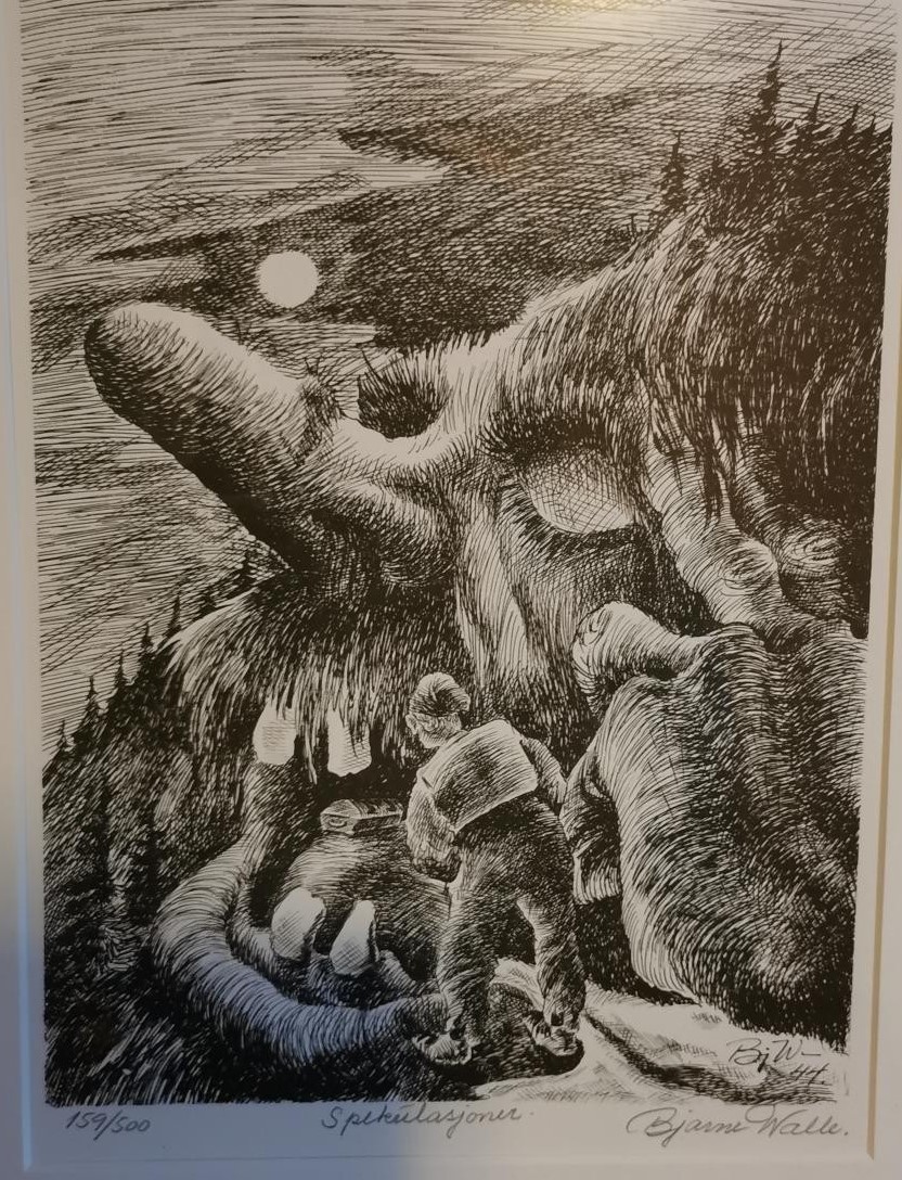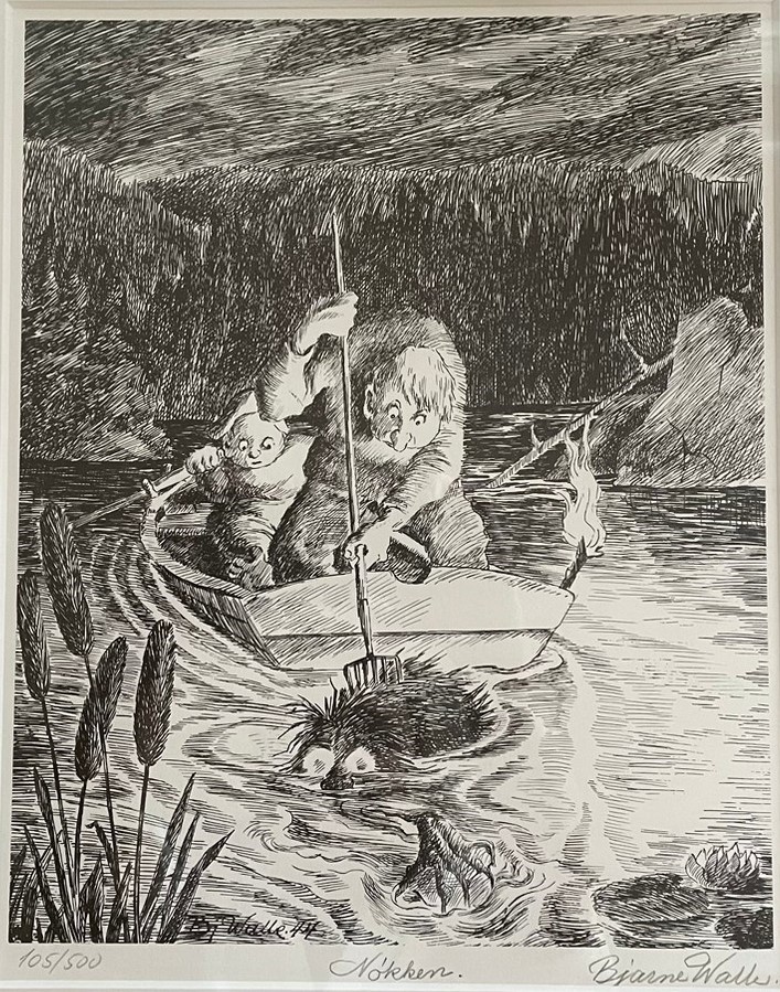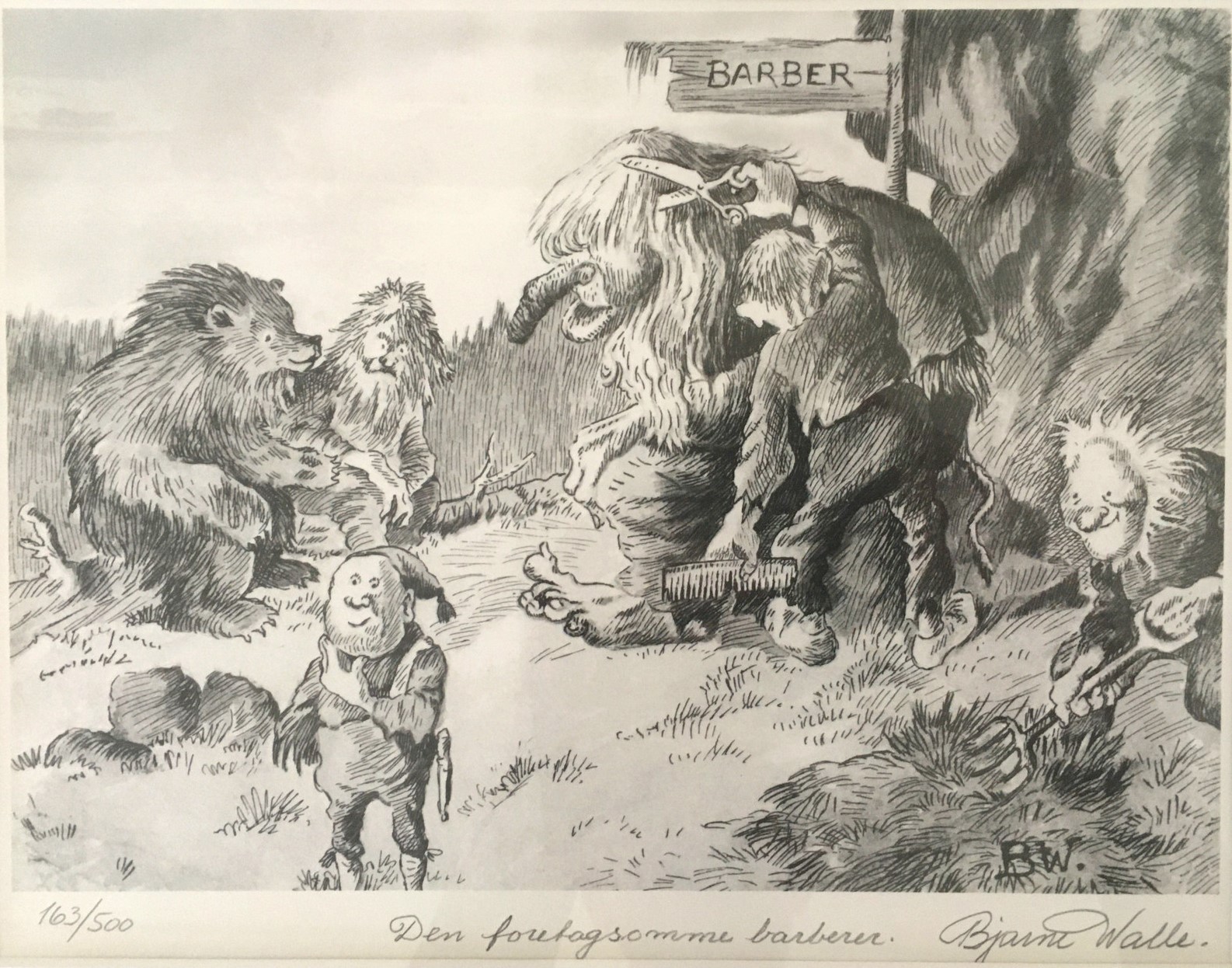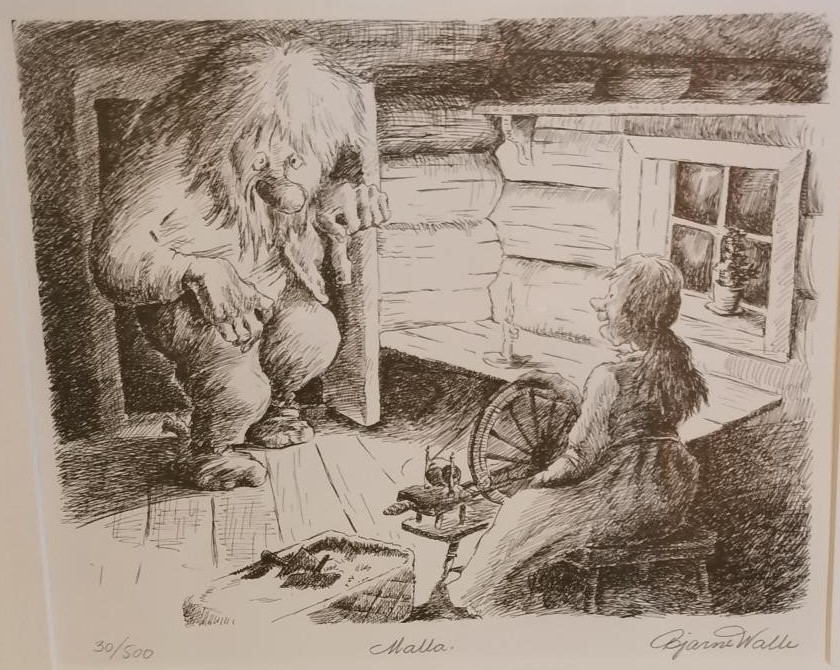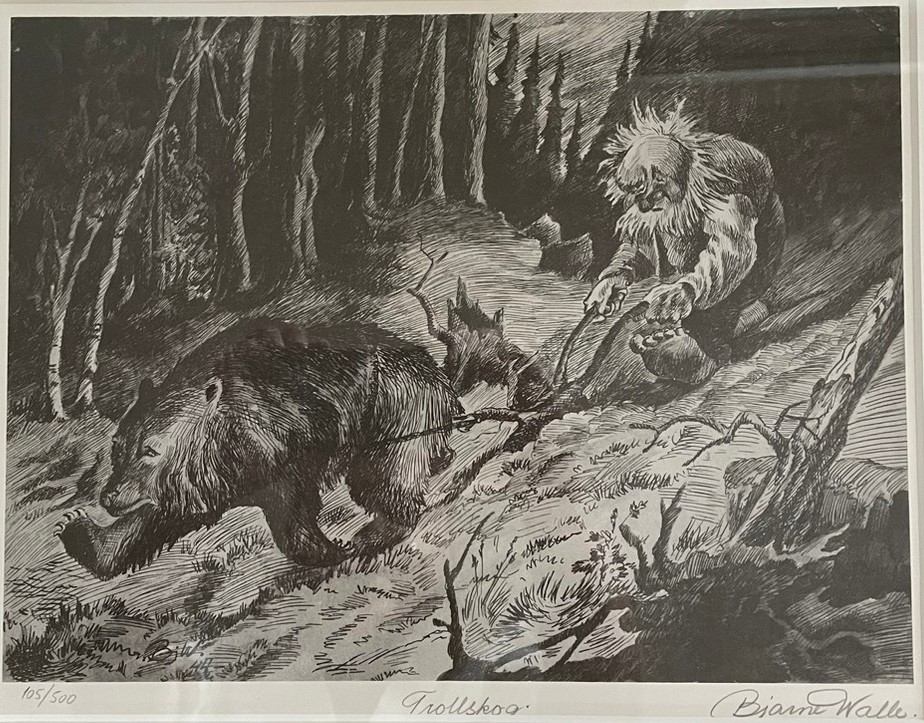 THANK YOU! I’ve enjoyed reading about Bj Walle as I have a large piece from 1970 that I treasure. It is a wolf eating porridge at the surprise of the troll. Marvelous! Jane Hult from Massachusetts USA
