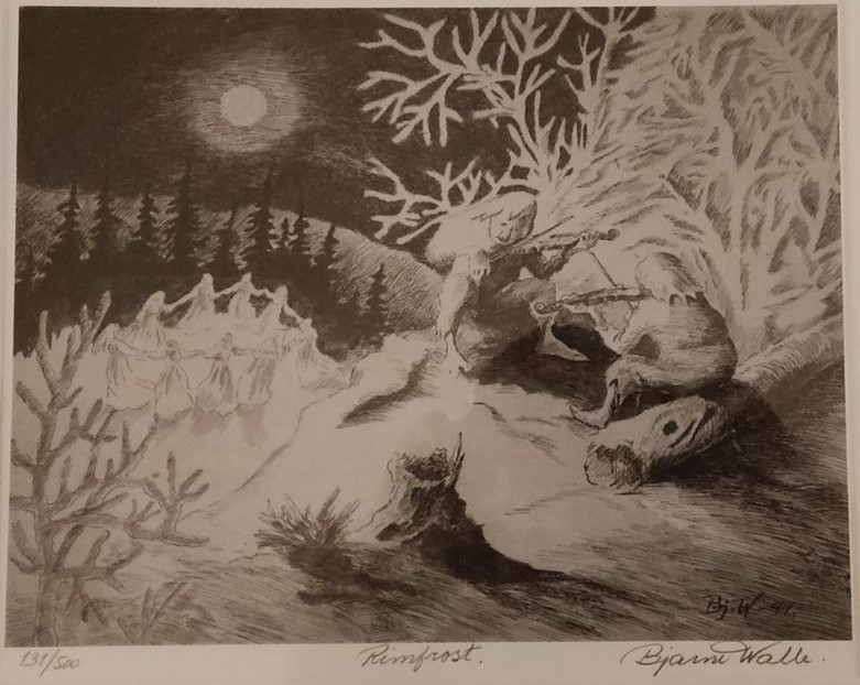 Bjarne Walle wasn’t only a skilled woodcarver, his talent extended further as he delved into drawing, painting and writing. For a number of years, he was also one of Norway’s most widely read authors. His first novel was published in 1969, and in 13 years he wrote 18 novels. The scene in the books is set in a Norwegian rural environment in the old days. The books are lush depictions of folk life, rich in environmental and natural atmospheres.