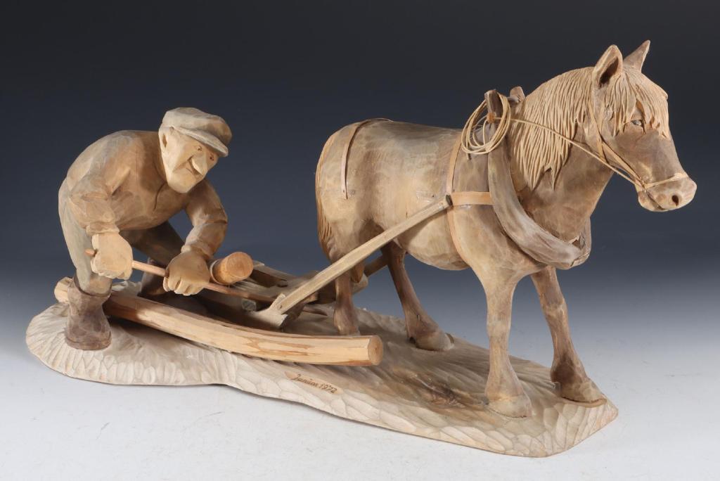 He became known early on as a woodcarver, and made a living as such. Walle’s carvings encompassed a diverse range of subjects, each meticulously rendered with finesse and precision. Whether depicting mythical creatures from Norwegian folklore, pastoral scenes of village life, or intricate patterns inspired by traditional designs, Bjarne’s works exhibited a deep connection to his cultural roots. His masterful ability to bring out the natural beauty of the wood, revealing its unique grain patterns and textures, elevated his creations to the realm of art.