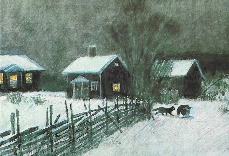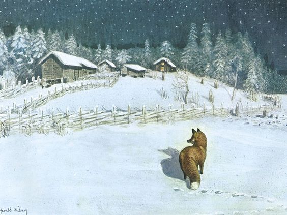 In 1965, a classic poem by Karl-Erik Forsslund was published next to illustrations by Wiberg in Sweden. For the release in other countries, Lindgren once again adapted the poetic text wrote and the book was published as “The Tomten and the Fox”.