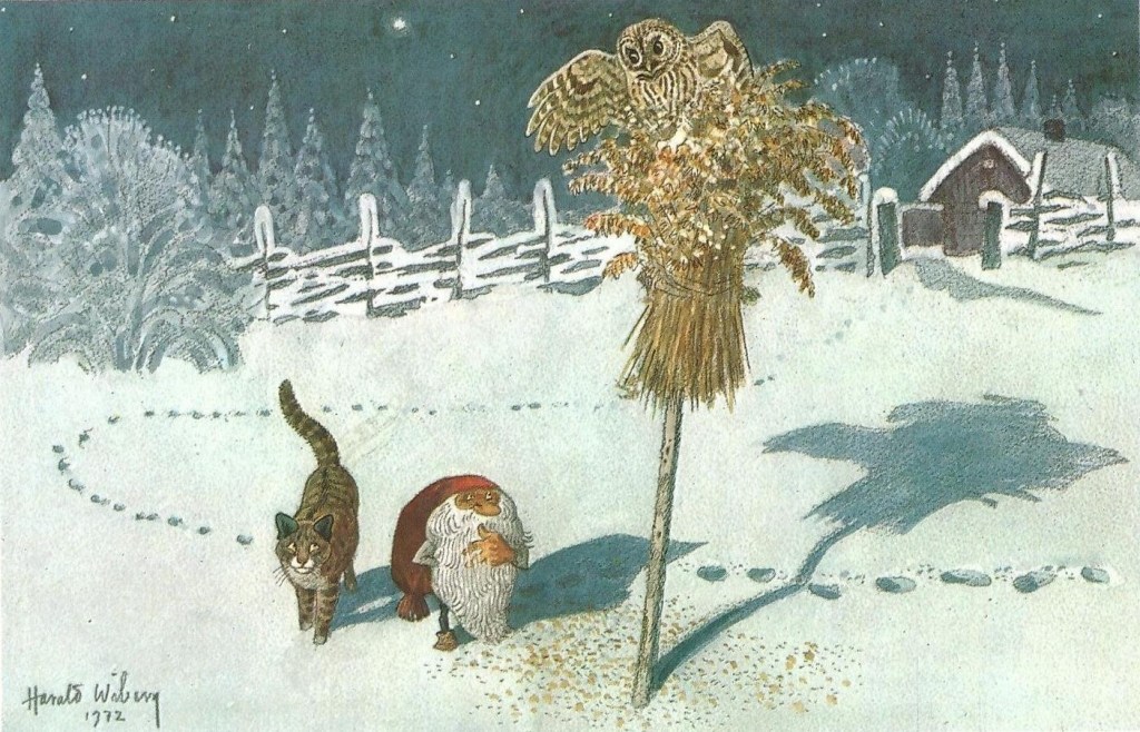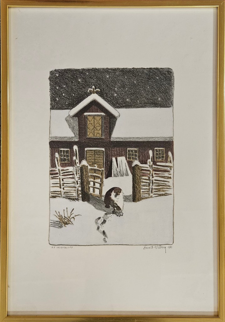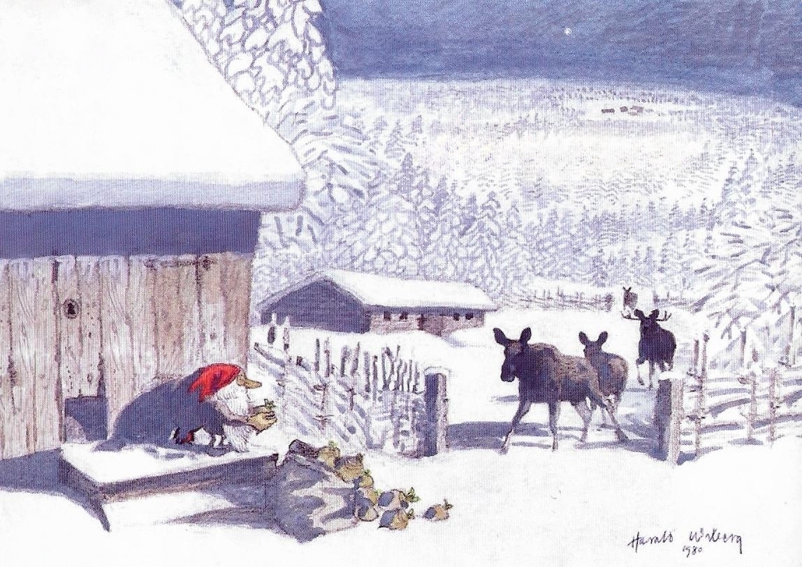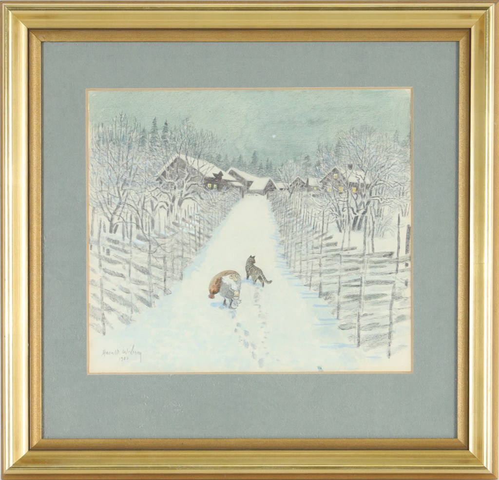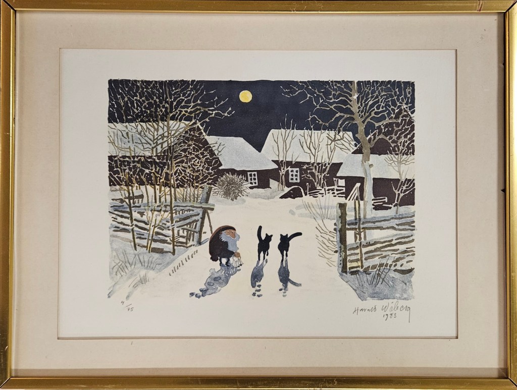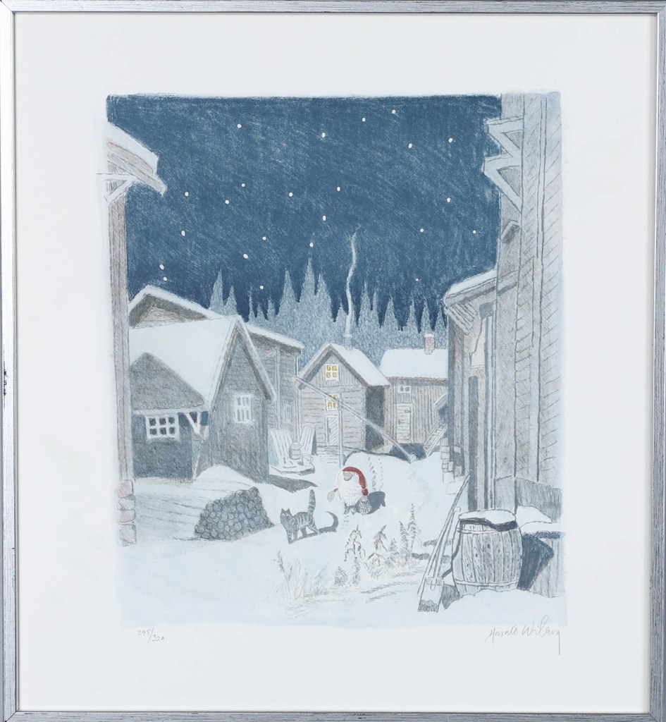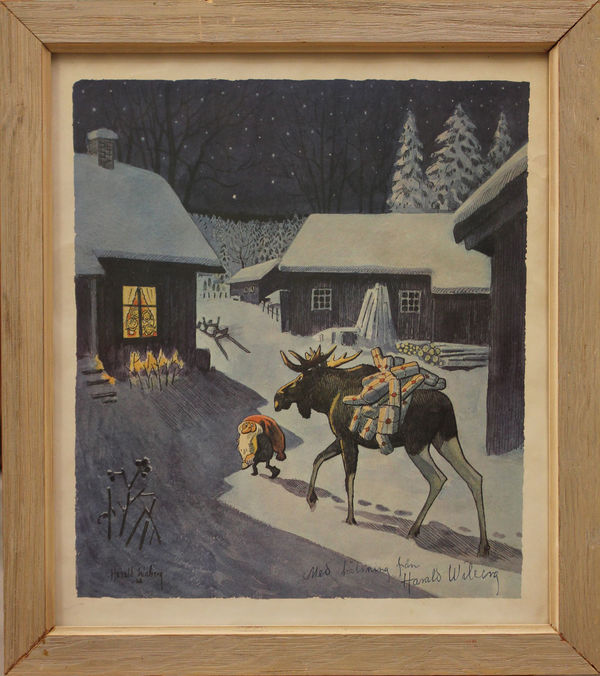 His original Tomten watercolours don’t come up for sale often, but when they do they are highly sought after and usually fetch a high price. As his primary art focus was nature and wildlife, it is uncertain how many Tomten watercolours Wiberg made. Most of them appear to be dated in the 1980s towards the end of his life.