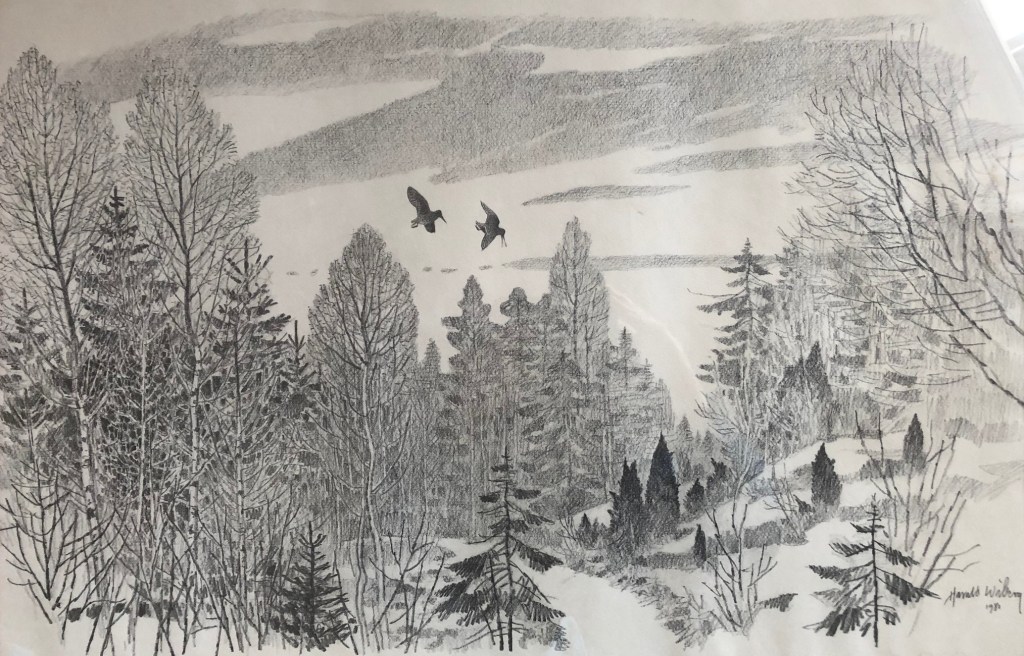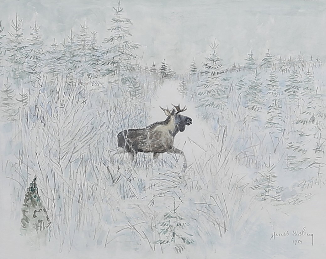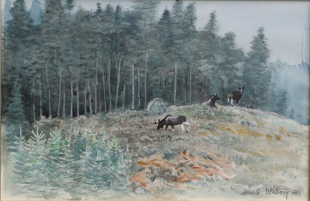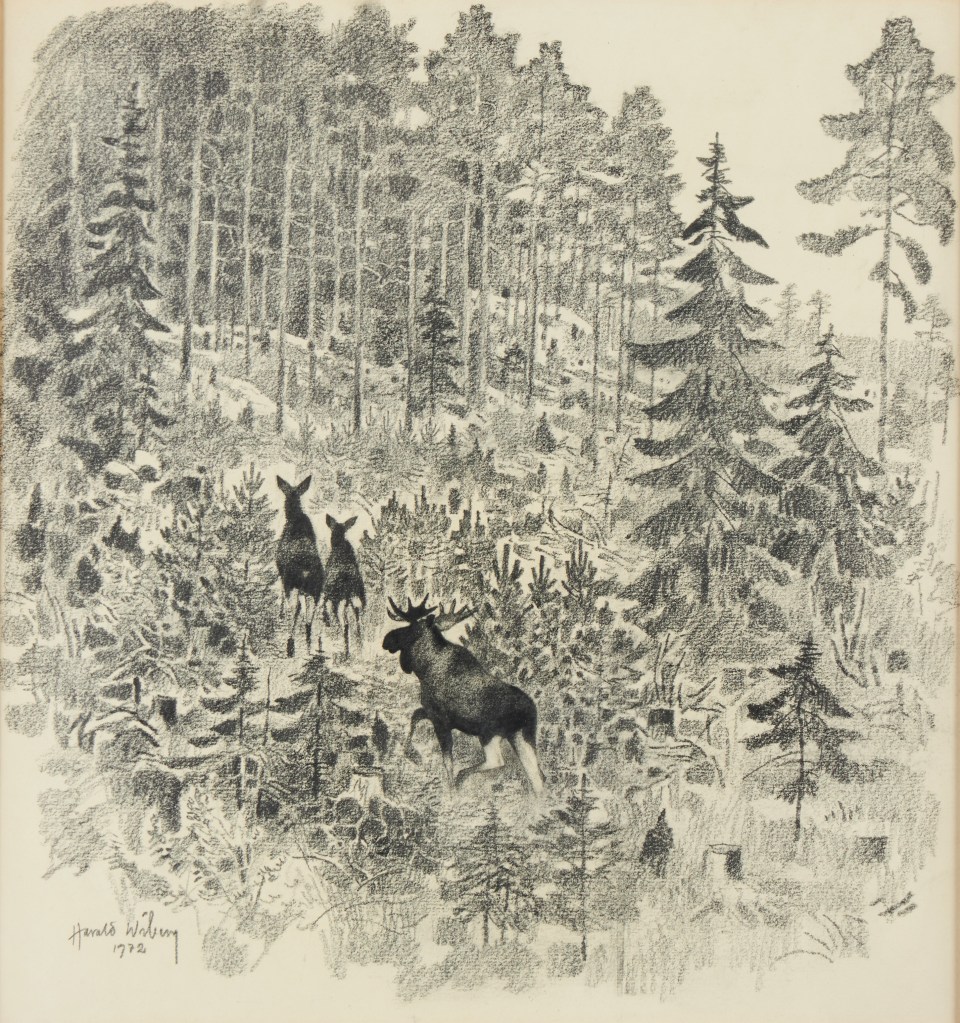 On 25 September 1986, a program by Boris Engström about the 78-year-old artist from Småland aired on Swedish TV1 with the title: Harald Wiberg: Hunter with pen and brush. In the program, Wiberg reflects on the beginning of spring. “Harald Wiberg is rarely seen without a pen or brush. He does not work to live – he lives to draw, paint, put down on paper everything that his sharp senses perceive from the wonders of nature“. You can watch a clip from the program below (unfortunately English subtitles are not available):