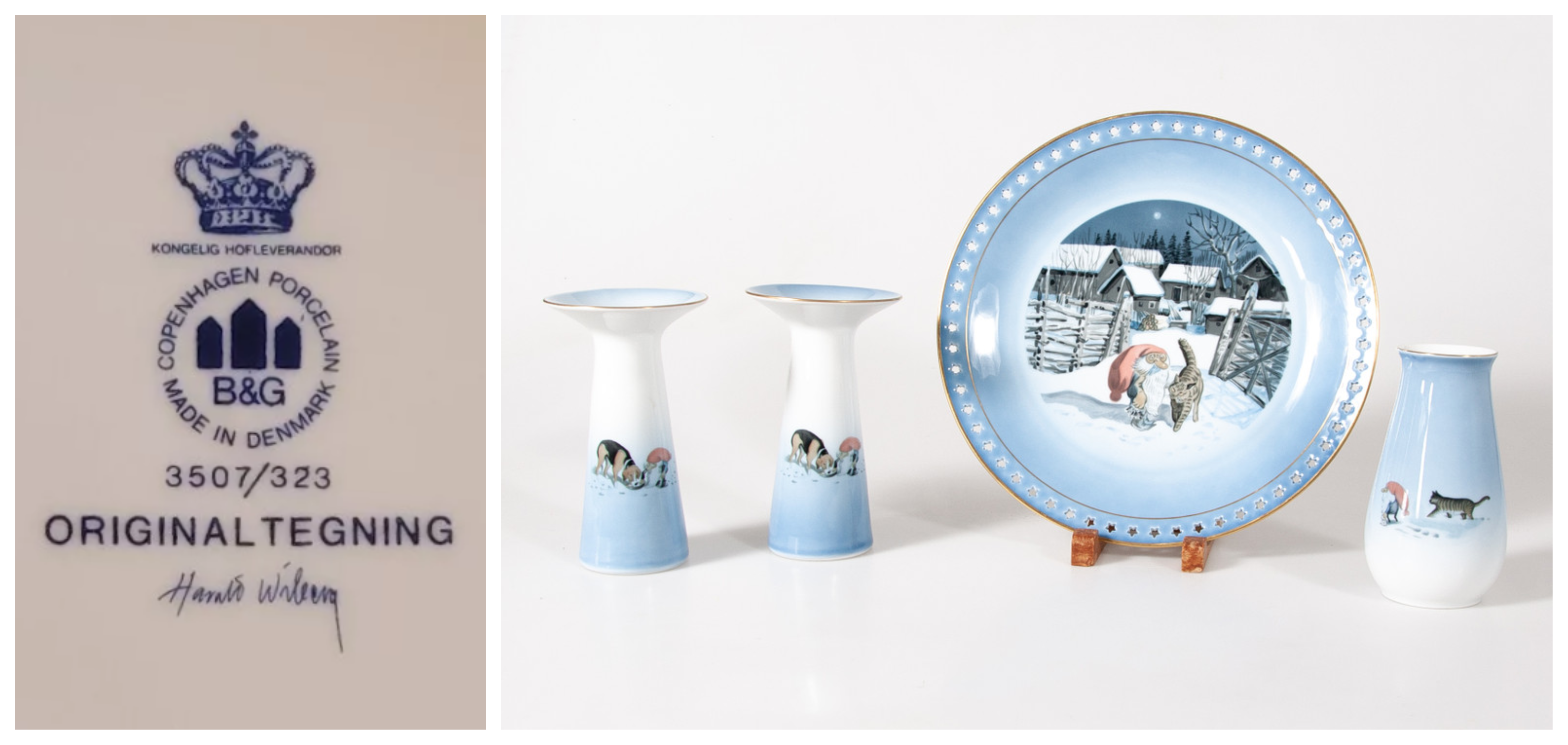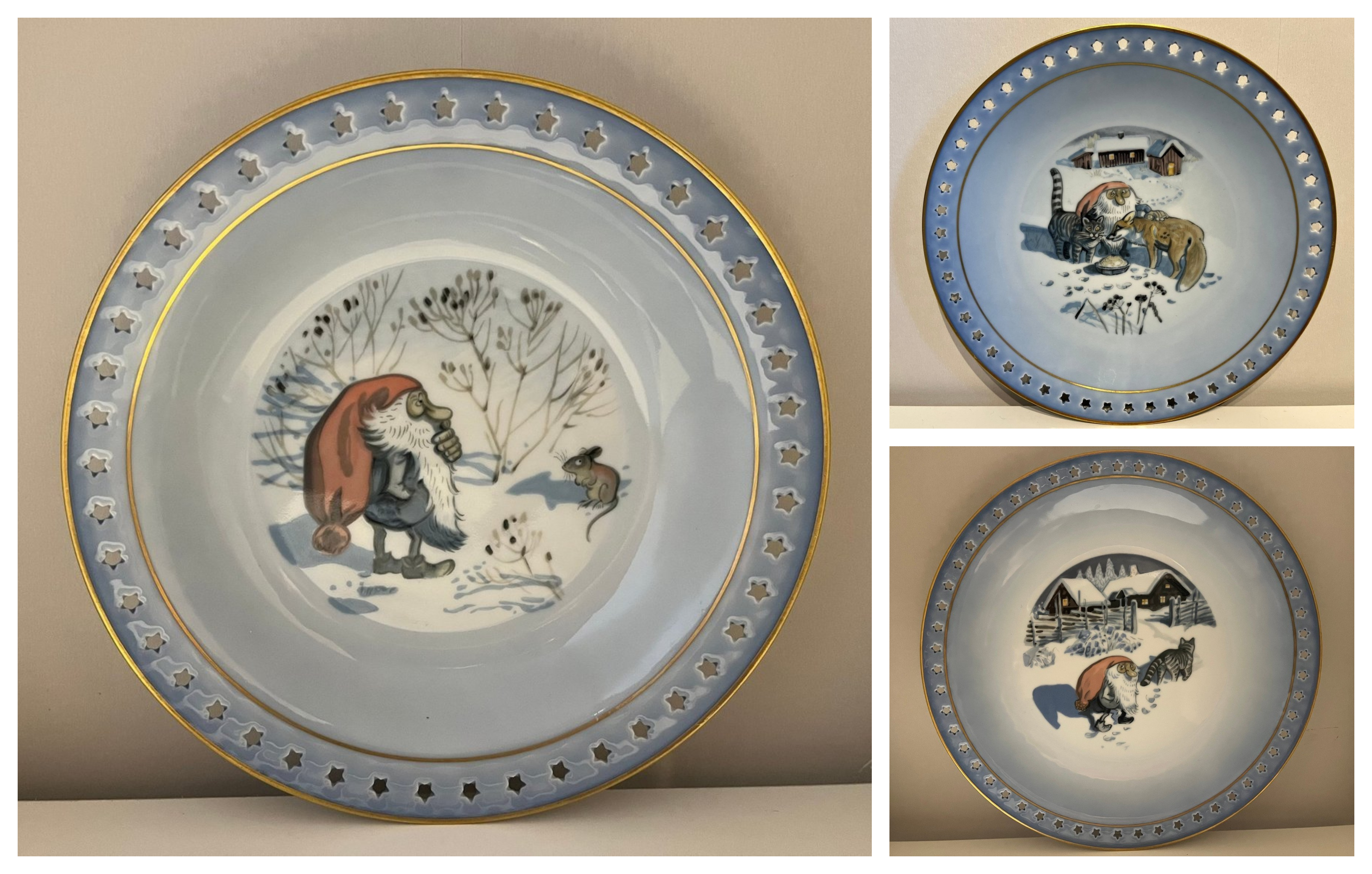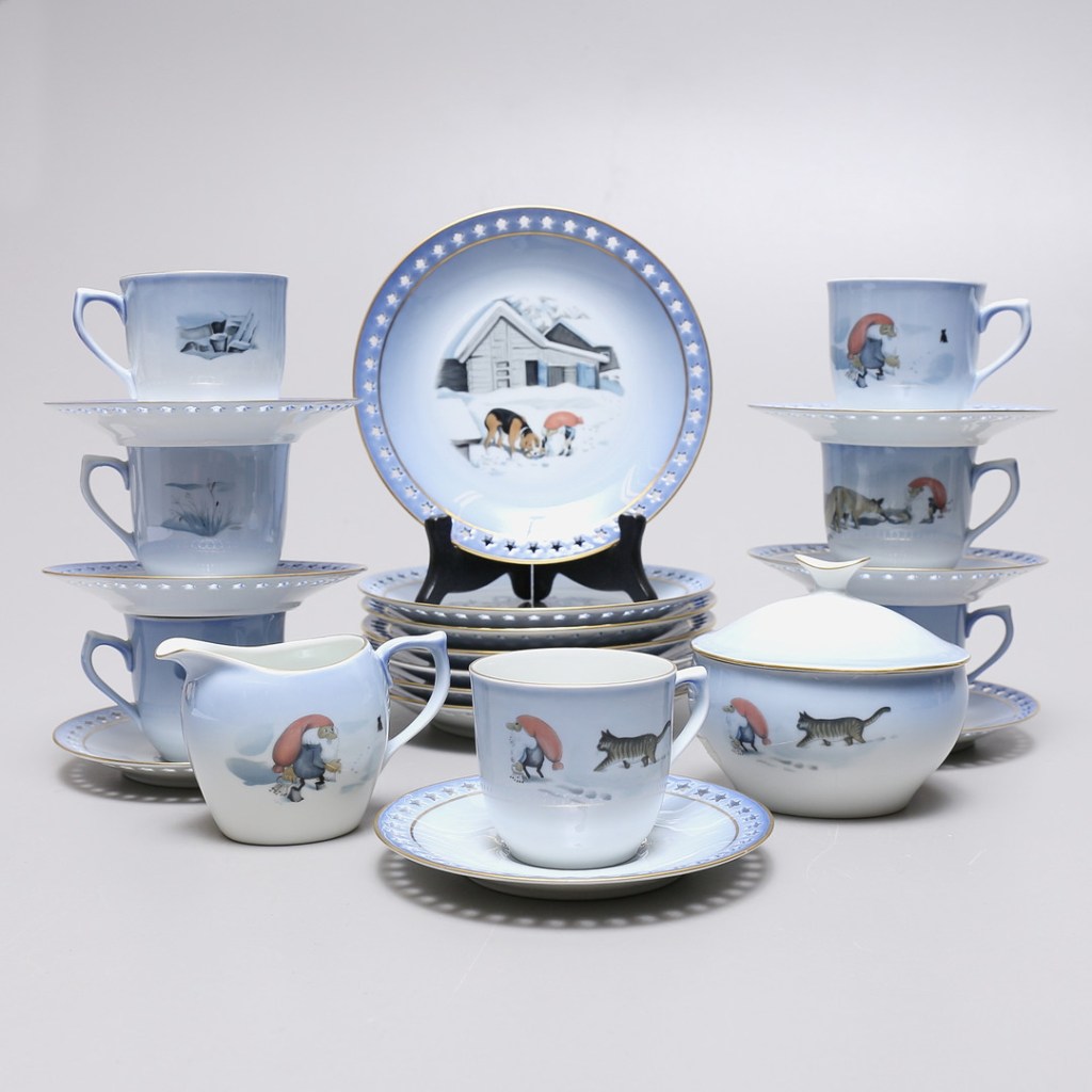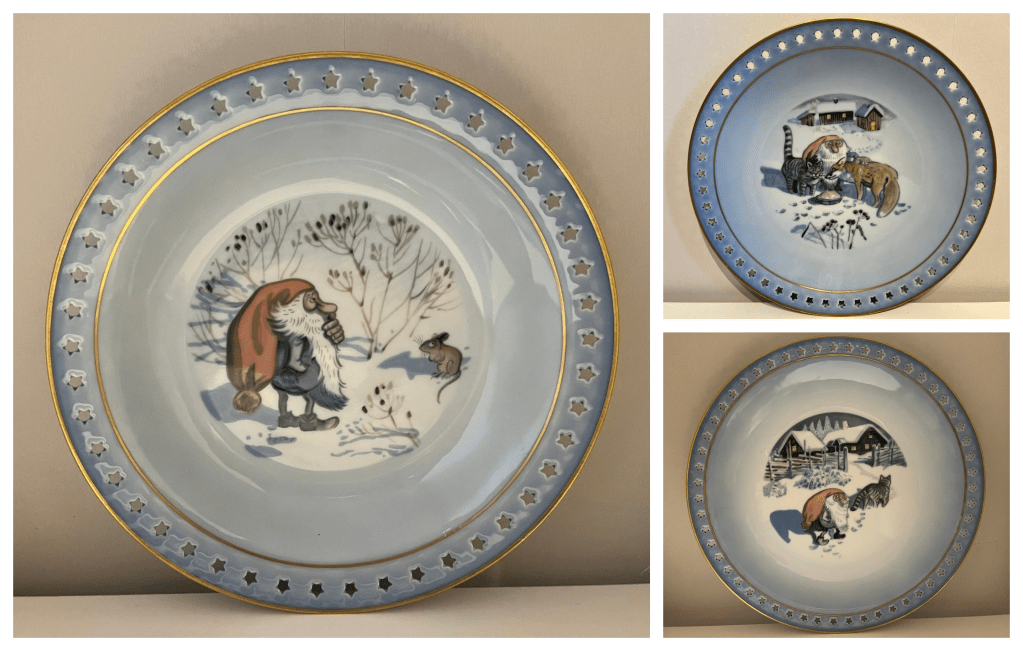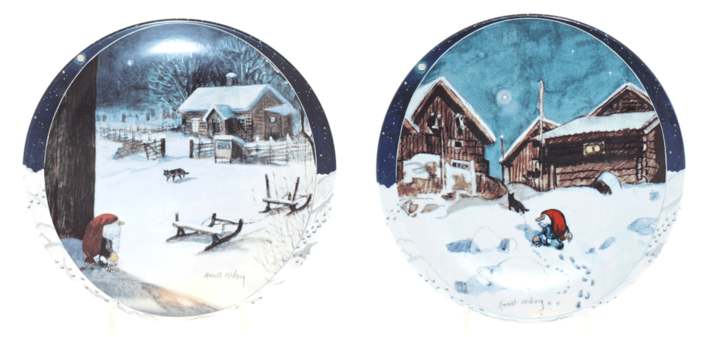 Another significant collaboration for Harald Wiberg was with Bing & Grøndahl, another esteemed Danish porcelain company. Known for their exquisite craftsmanship and decorative art pieces, Bing & Grøndahl provided a perfect canvas for Wiberg’s illustrations. His artwork was featured on a variety of items, including plates, mugs, and entire tea sets. Wiberg’s ability to convey the charm and mystery of the Tomten, along with the serene beauty of Scandinavian nature and wildlife, made these products highly popular among collectors.