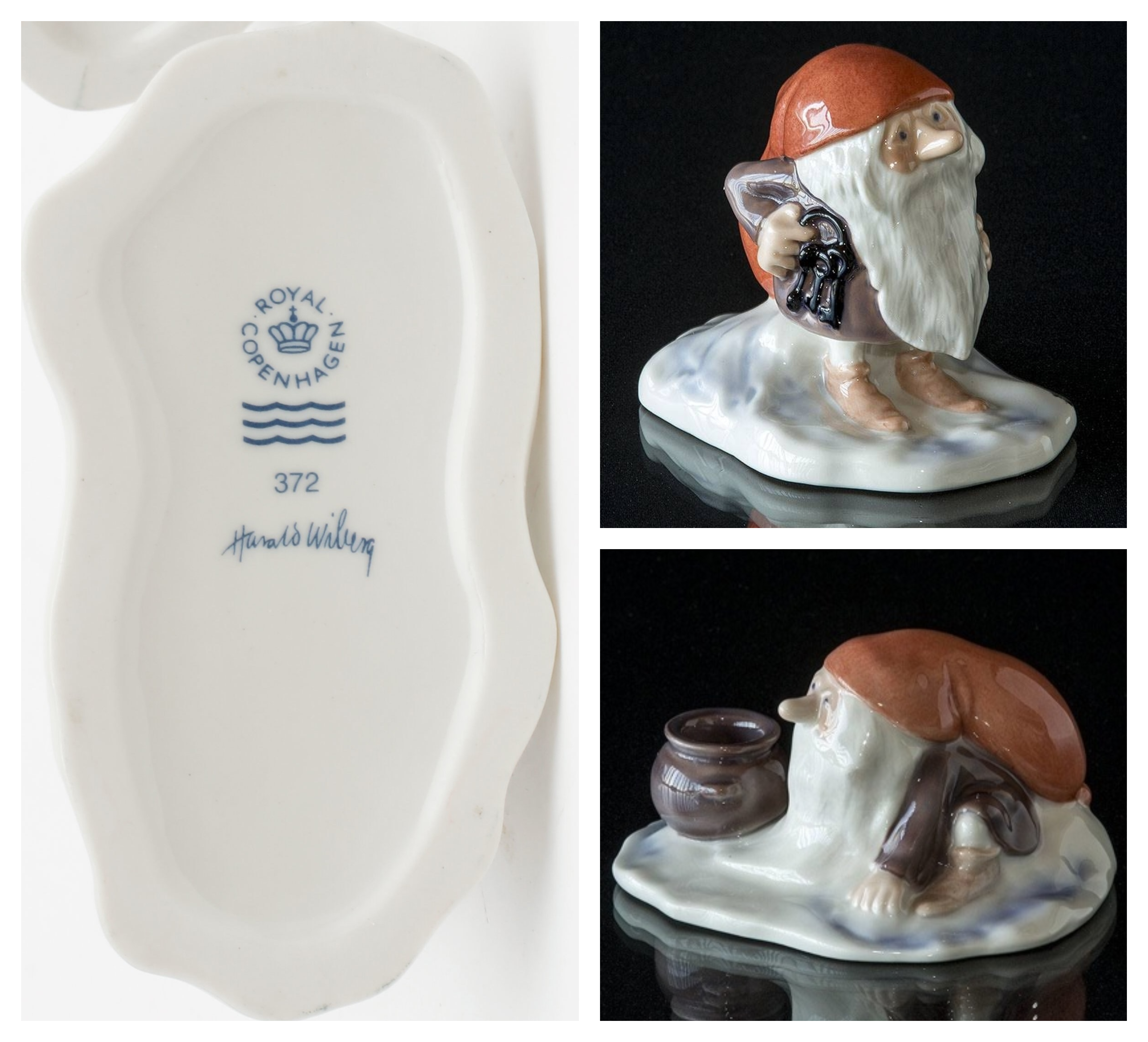 Each figurine is stamped underneath with the Royal Copenhagen logo, number identifying the figure and Harald Wiberg’s signature: