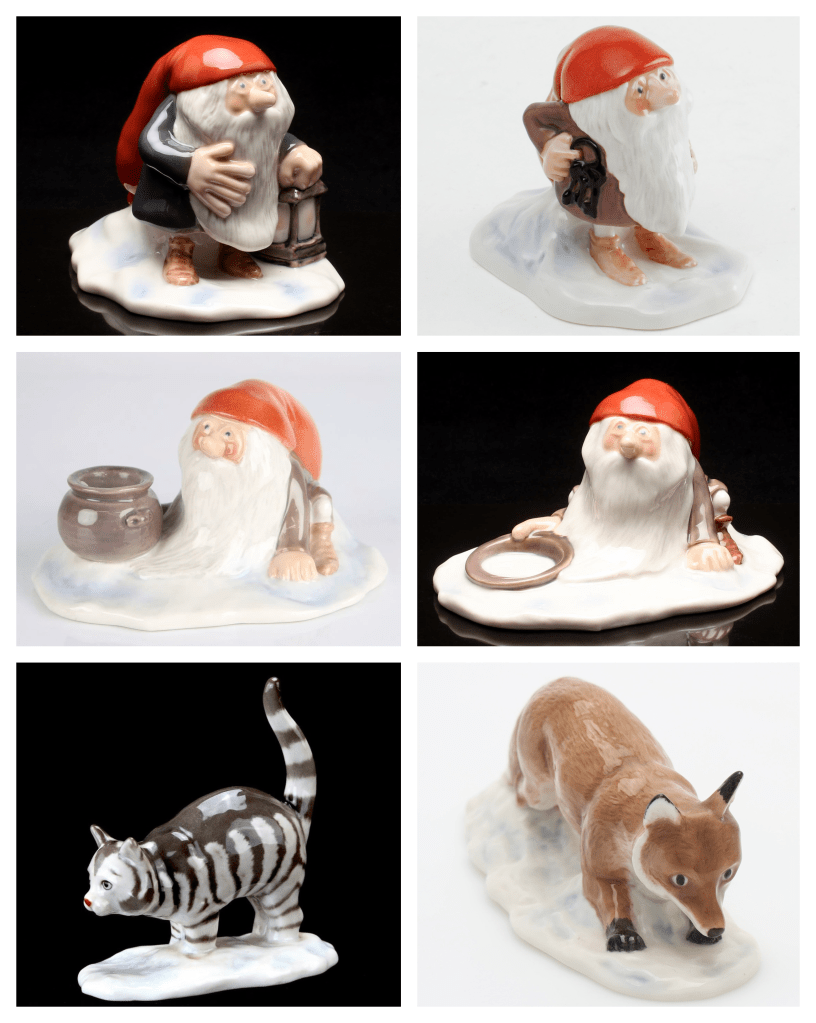 Harald Wiberg’s illustrations were brought to life by Royal Copenhagen in this fantastic collaboration. Royal Copenhagen, renowned for its high-quality porcelain and artistic designs, featured Wiberg’s characters from the Tomten books in porcelain figurines. Royal Copenhagen mentions the following on their website: “Charming porcelain sculptures and figurines from Royal Copenhagen are a true classic. Over a century, countless figurines in all shapes and sizes have left the factory halls. Every animal imaginable, adults, children and even fairy tale creatures have been sculpted by the talented craftsmen and made their way to homes across the world. The figurines are as much part of Royal Copenhagen’s proud heritage as the beloved blue-painted collections“.