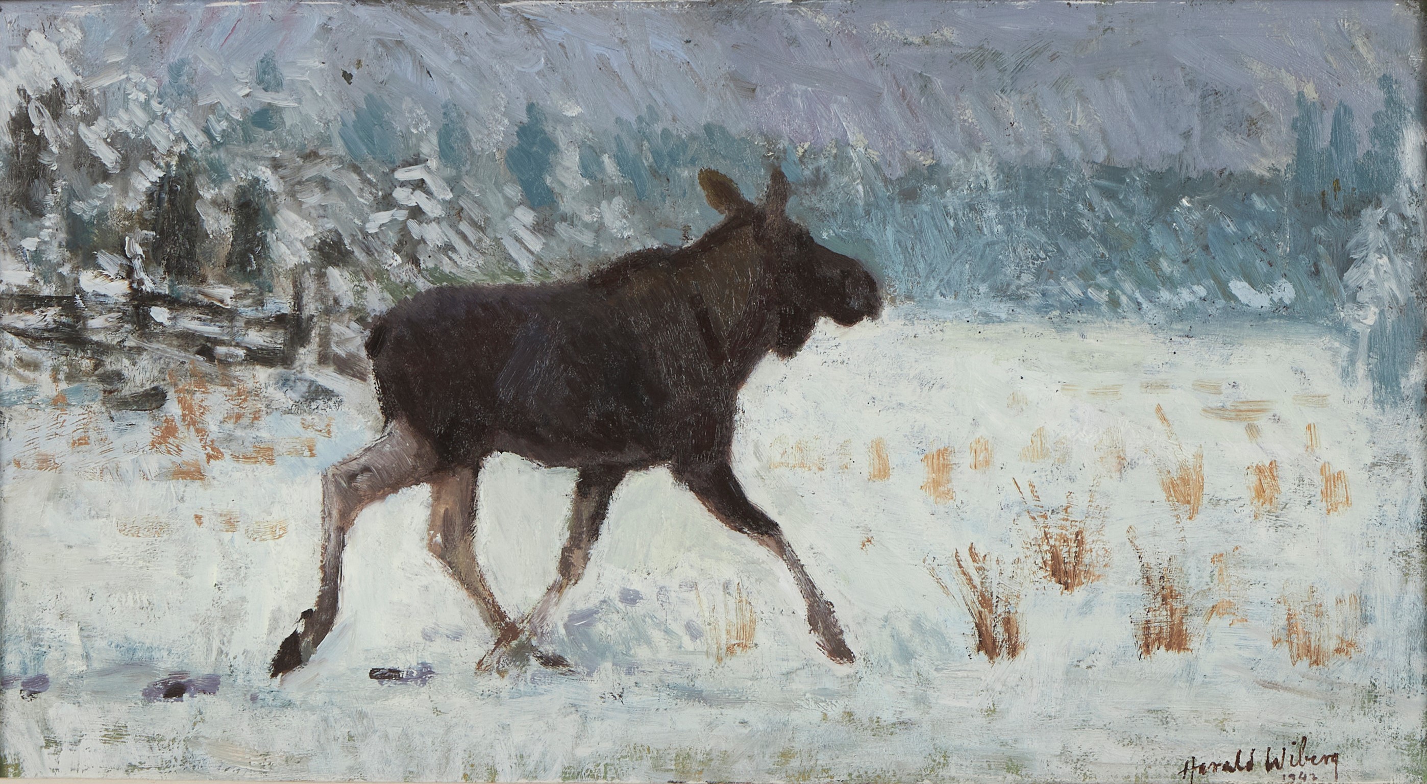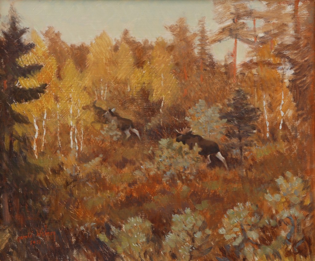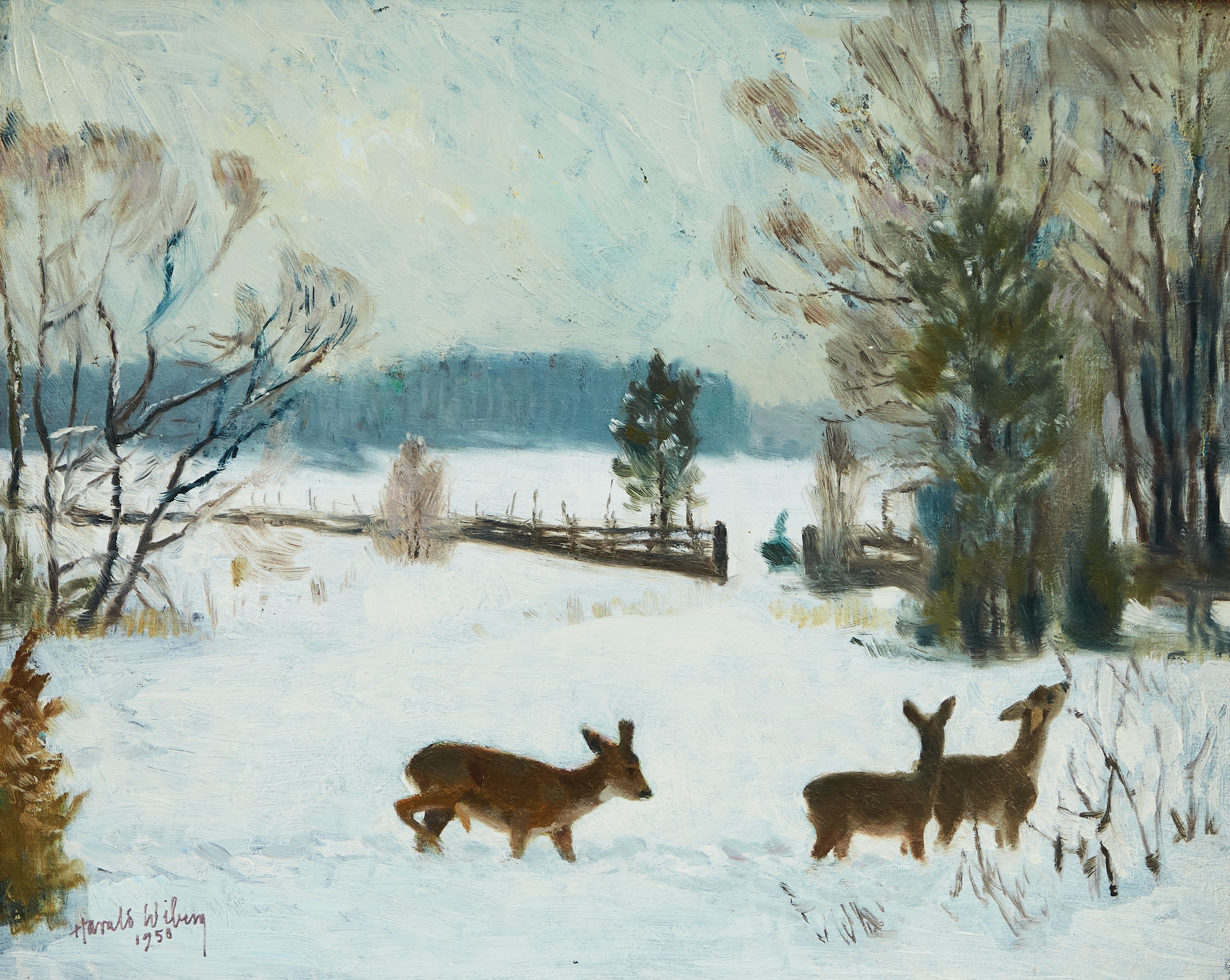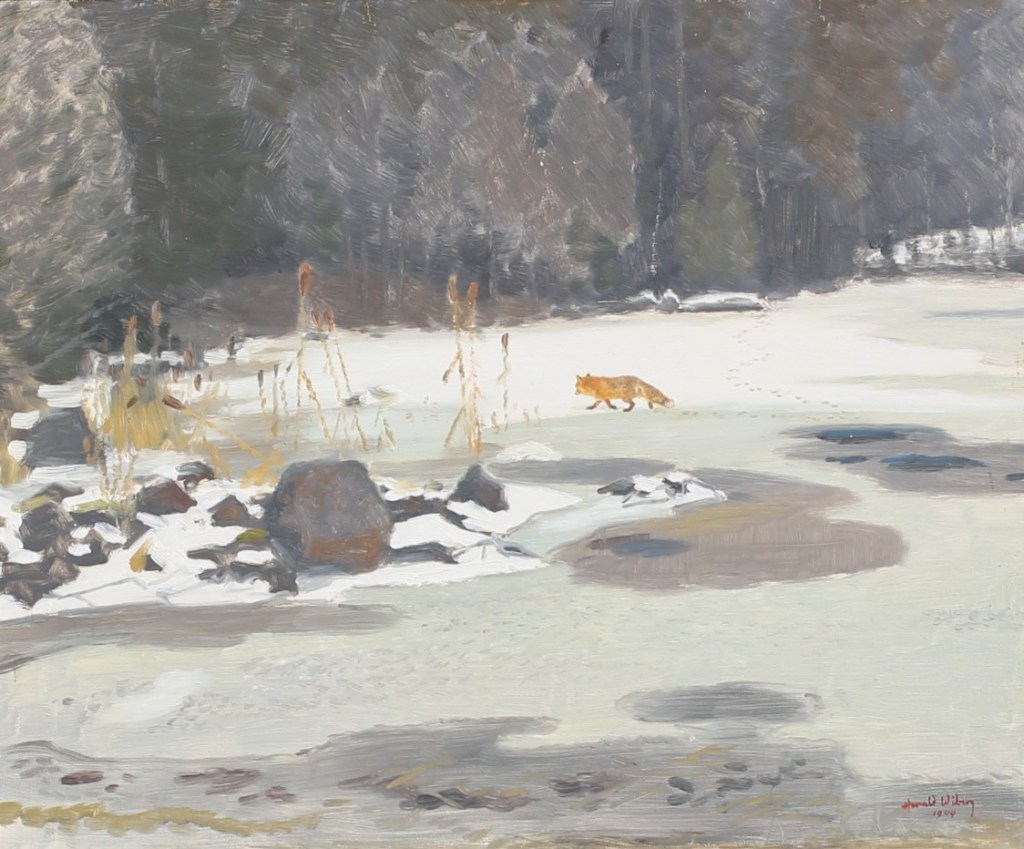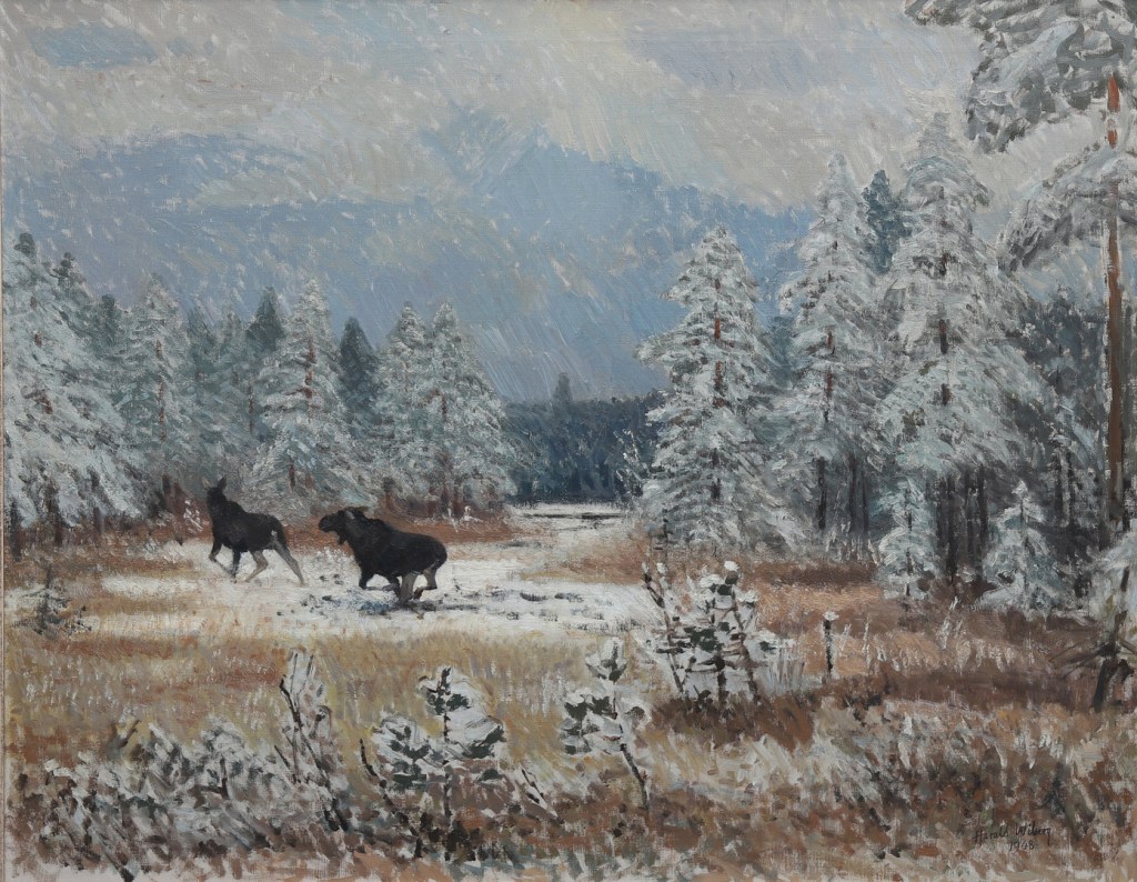 Harald also produced fantastic oil paintings which captured nature and wildlife in action with more depth. His oil paintings often feature serene winter scenes, capturing the quiet beauty and subtle color variations of snow-covered forests and fields. Wiberg’s technique is distinguished by his delicate brushwork and a keen sense of light and shadow, which lend a luminous quality to his paintings. His ability to convey the tranquility and isolation of nature through his use of soft, muted tones and intricate textures sets his work apart.