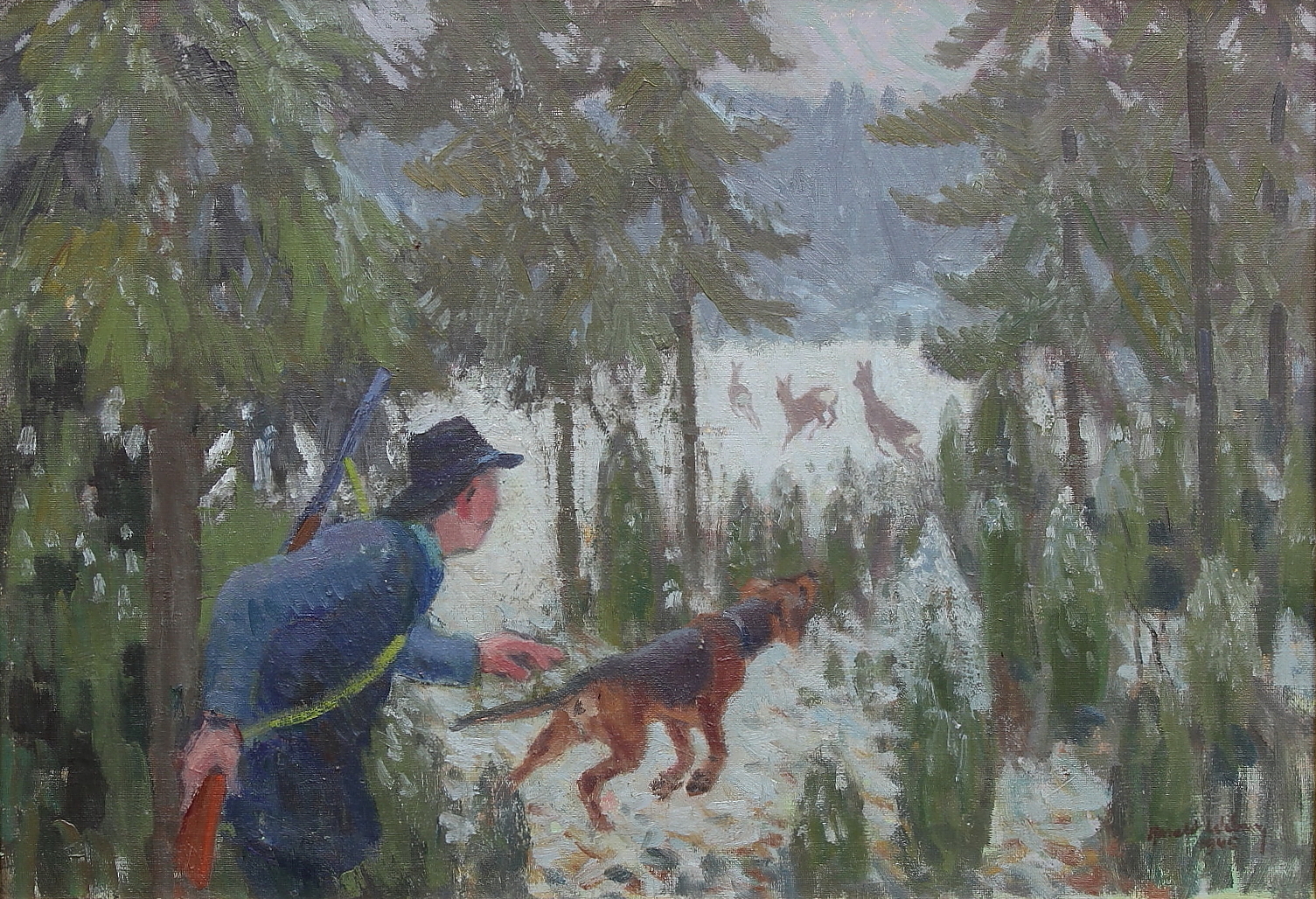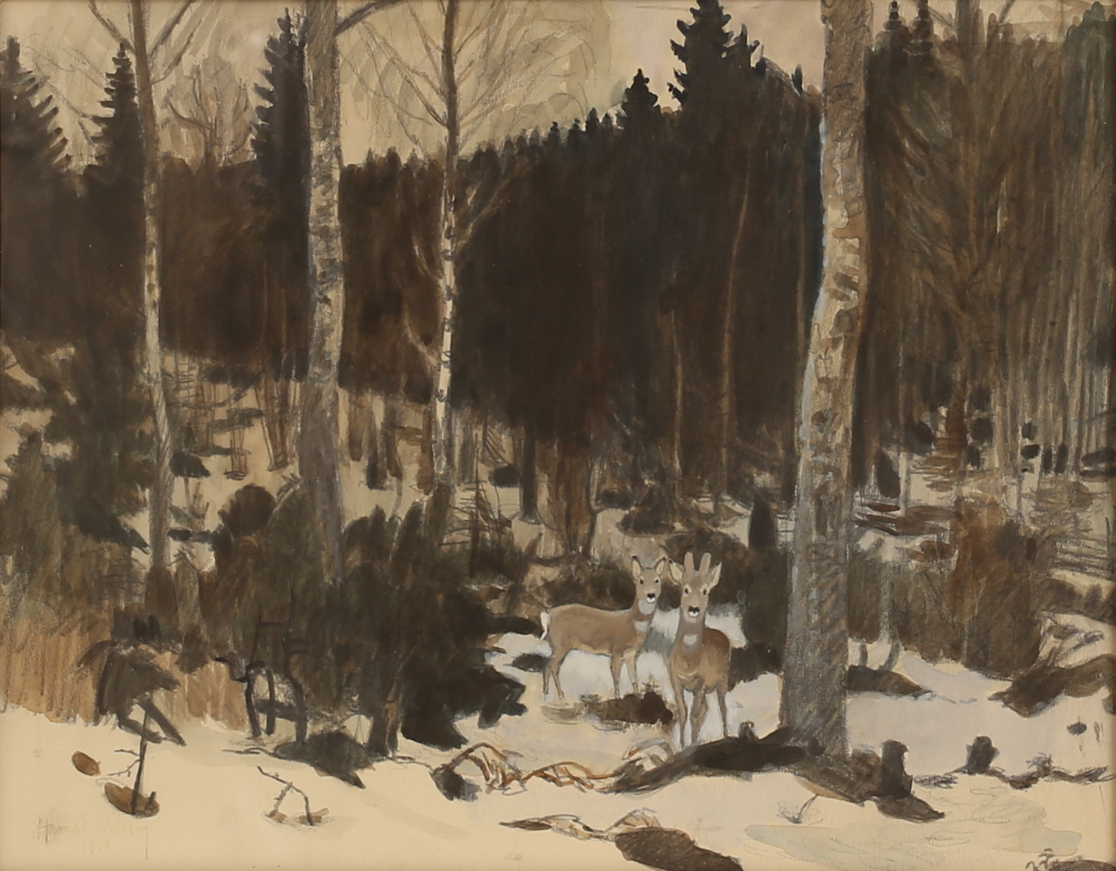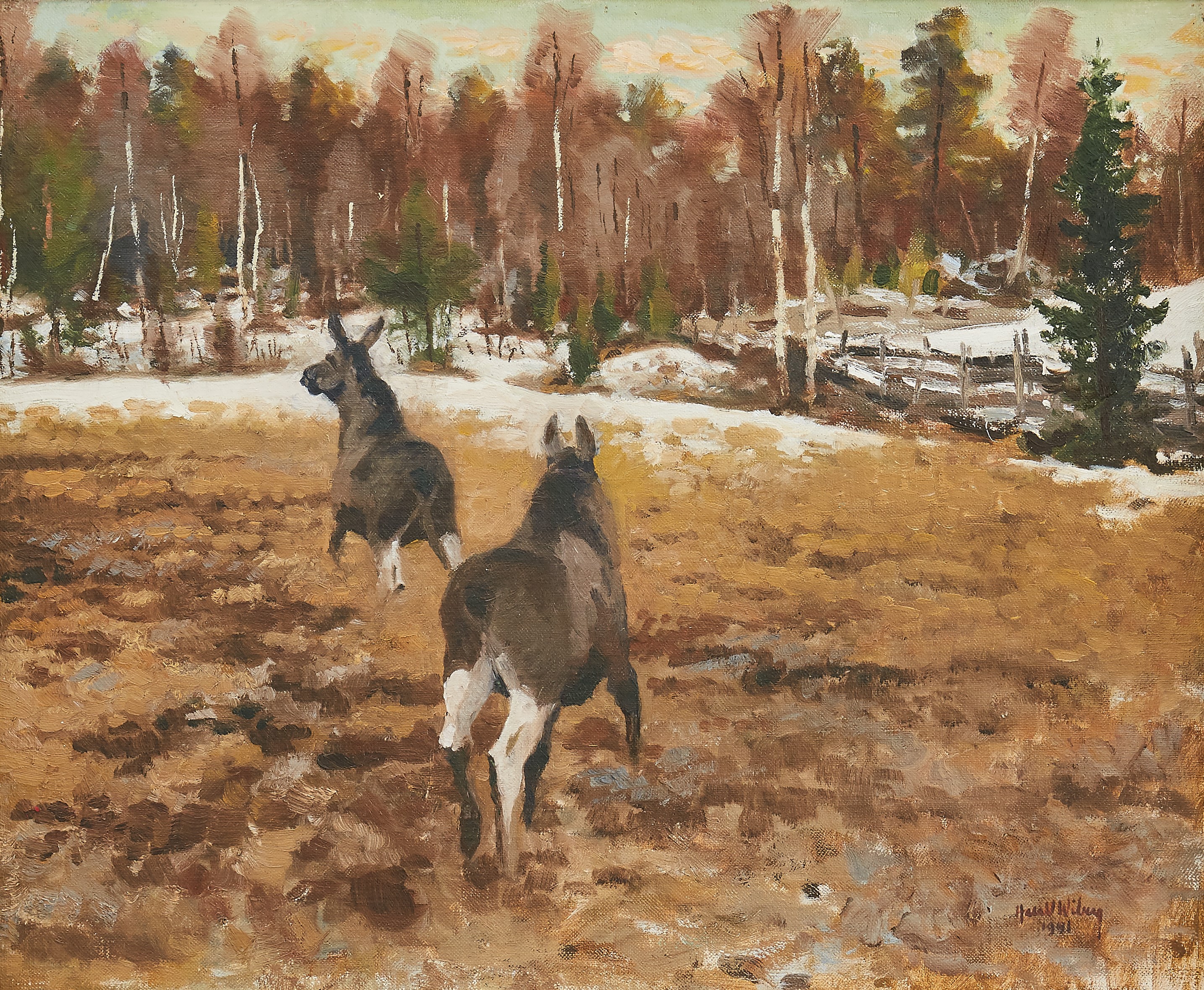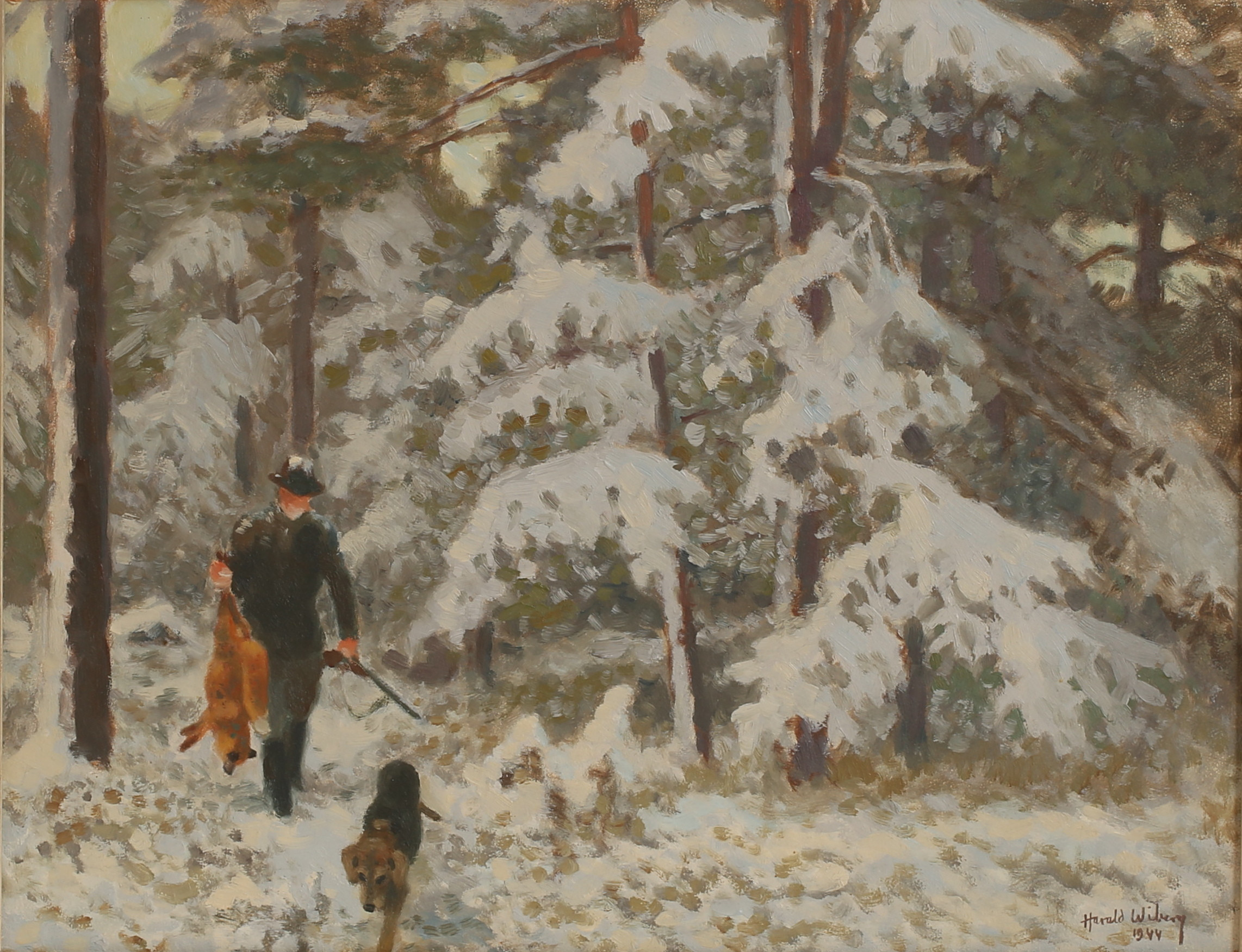 Harald also produced fantastic oil paintings which captured nature and wildlife in action with more depth. His oil paintings often feature serene winter scenes, capturing the quiet beauty and subtle color variations of snow-covered forests and fields. Wiberg’s technique is distinguished by his delicate brushwork and a keen sense of light and shadow, which lend a luminous quality to his paintings. His ability to convey the tranquility and isolation of nature through his use of soft, muted tones and intricate textures sets his work apart.