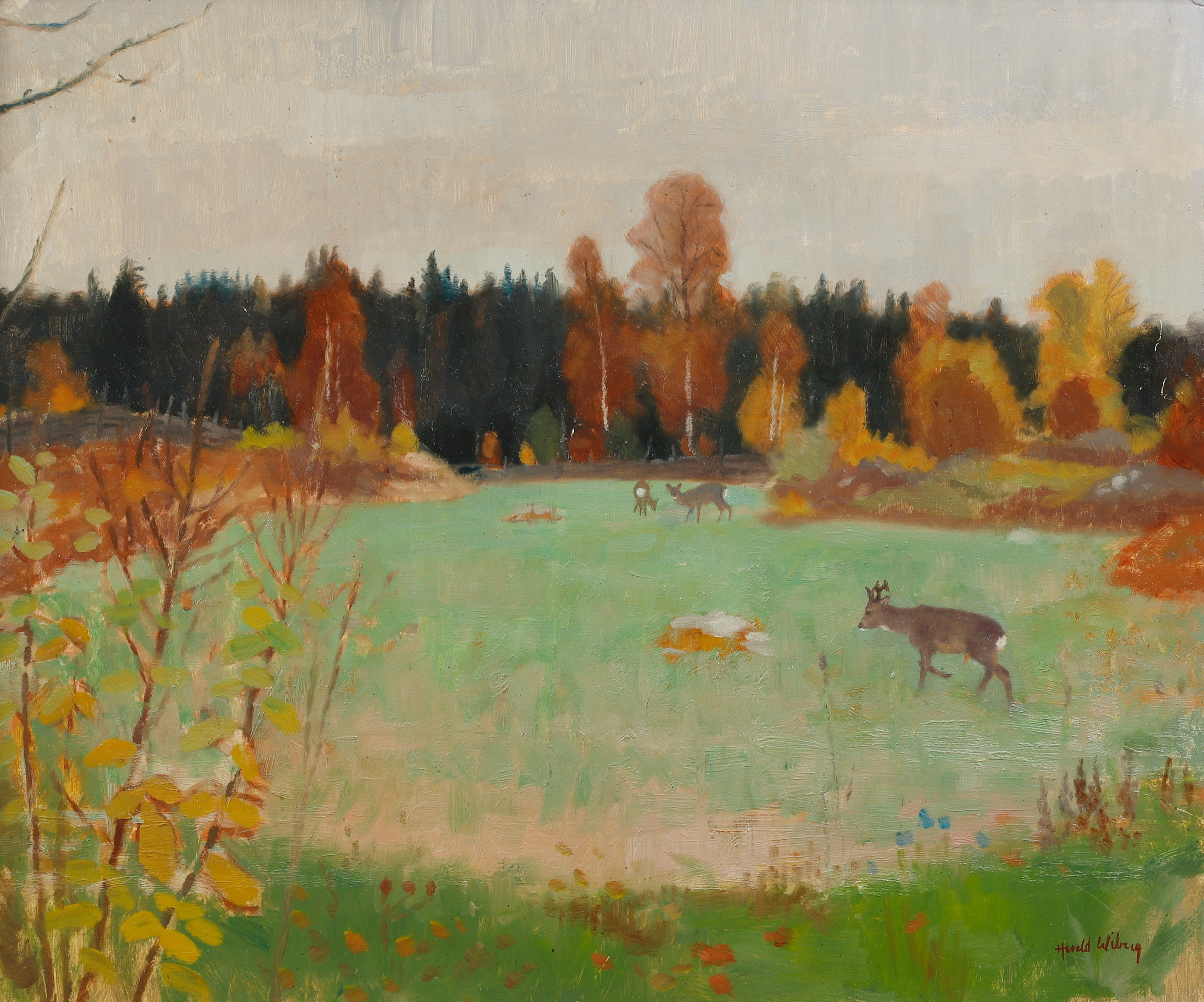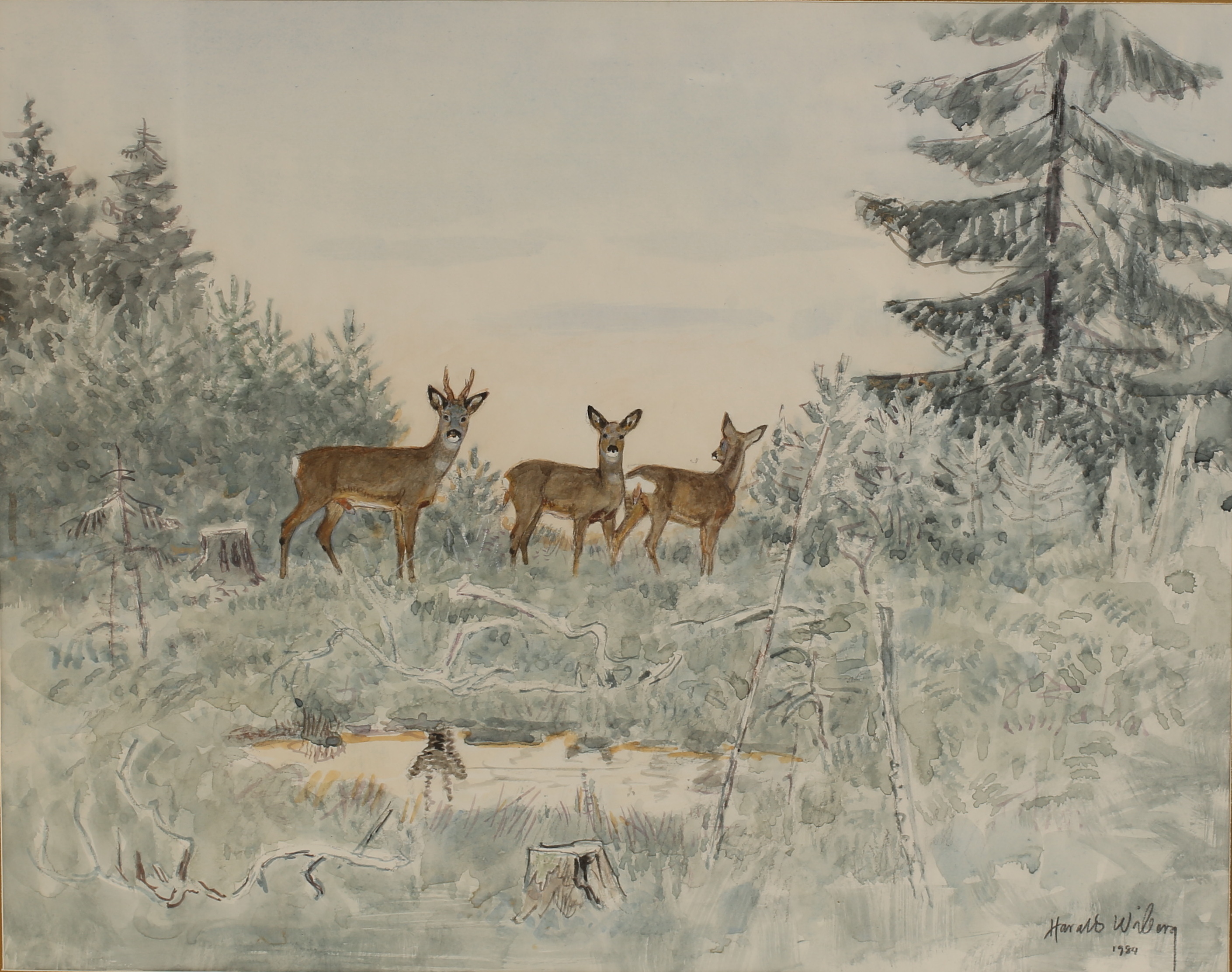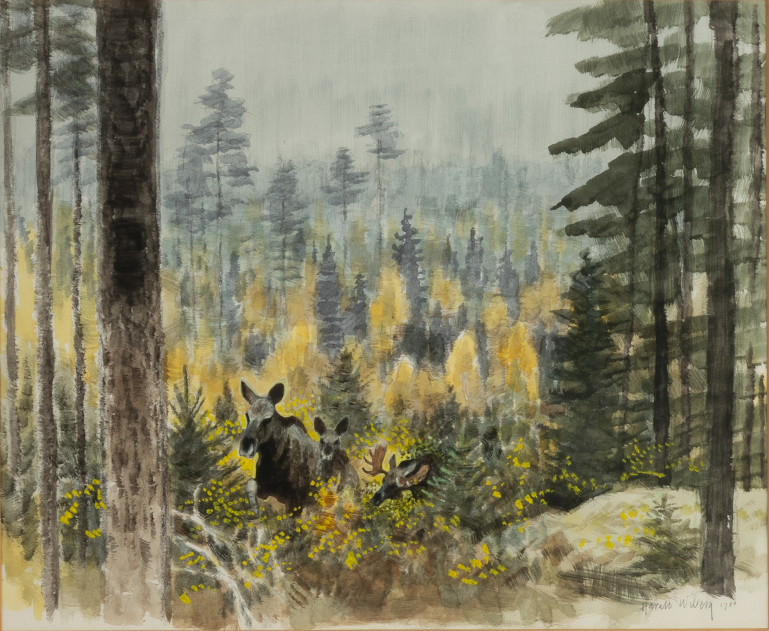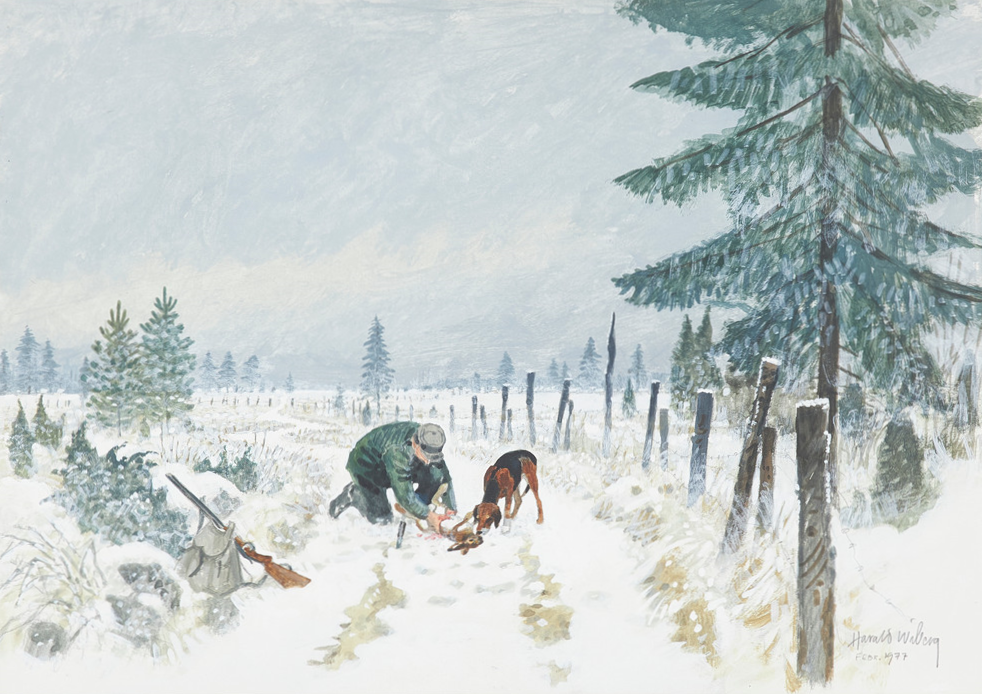 Harald Larald Wiberg’s images of Swedish nature are so immediate that they go straight into our minds. Everyone recognizes themselves in his realistic depictions of nature. They evoke strong memories of forest walks, mushroom excursions, fishing trips and hunting.