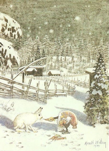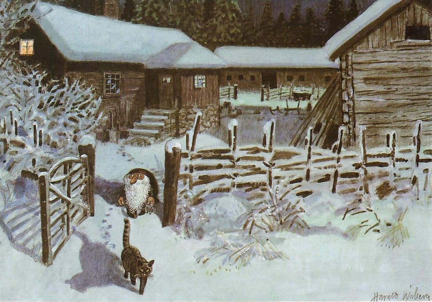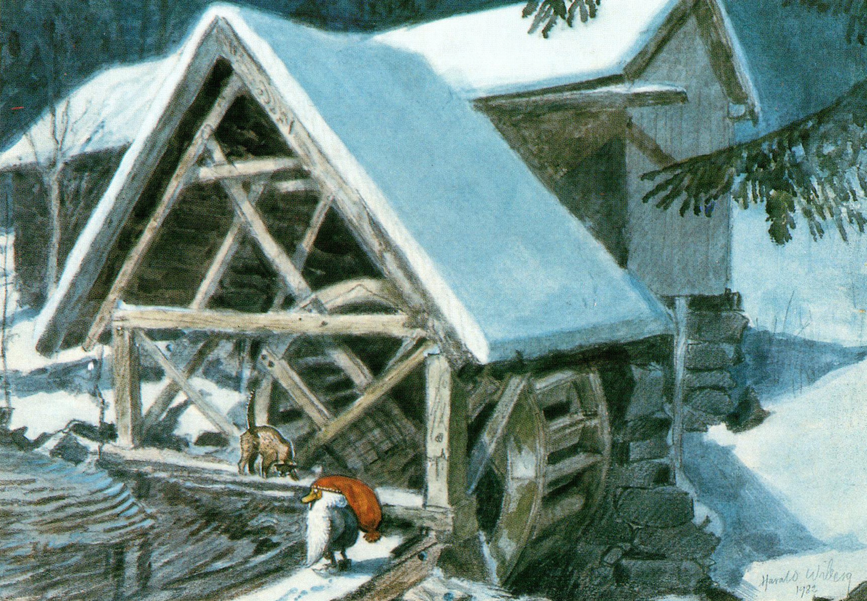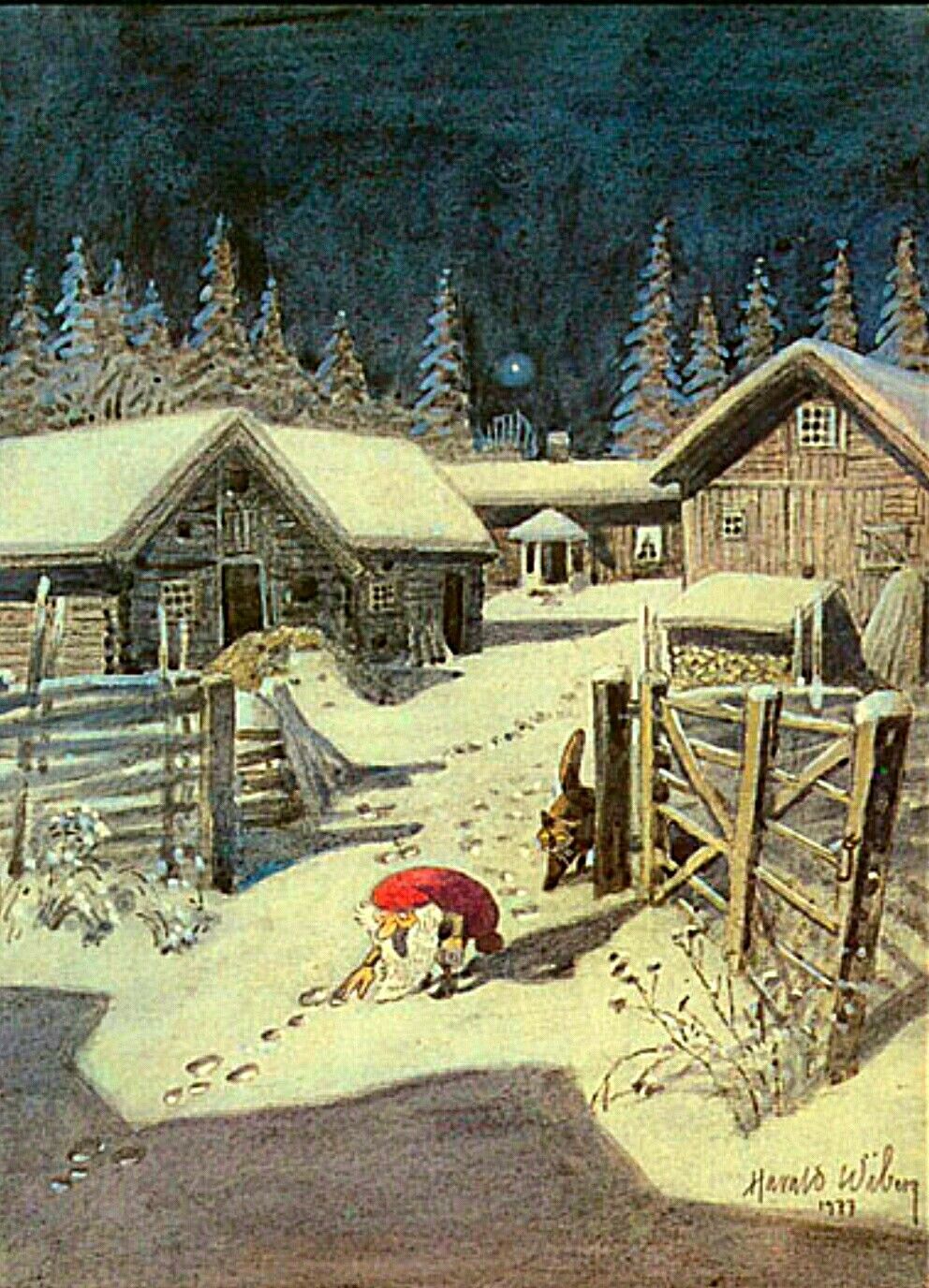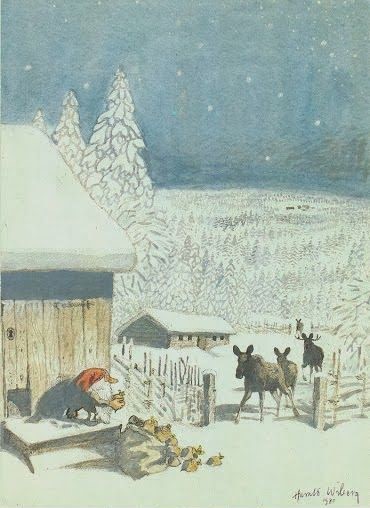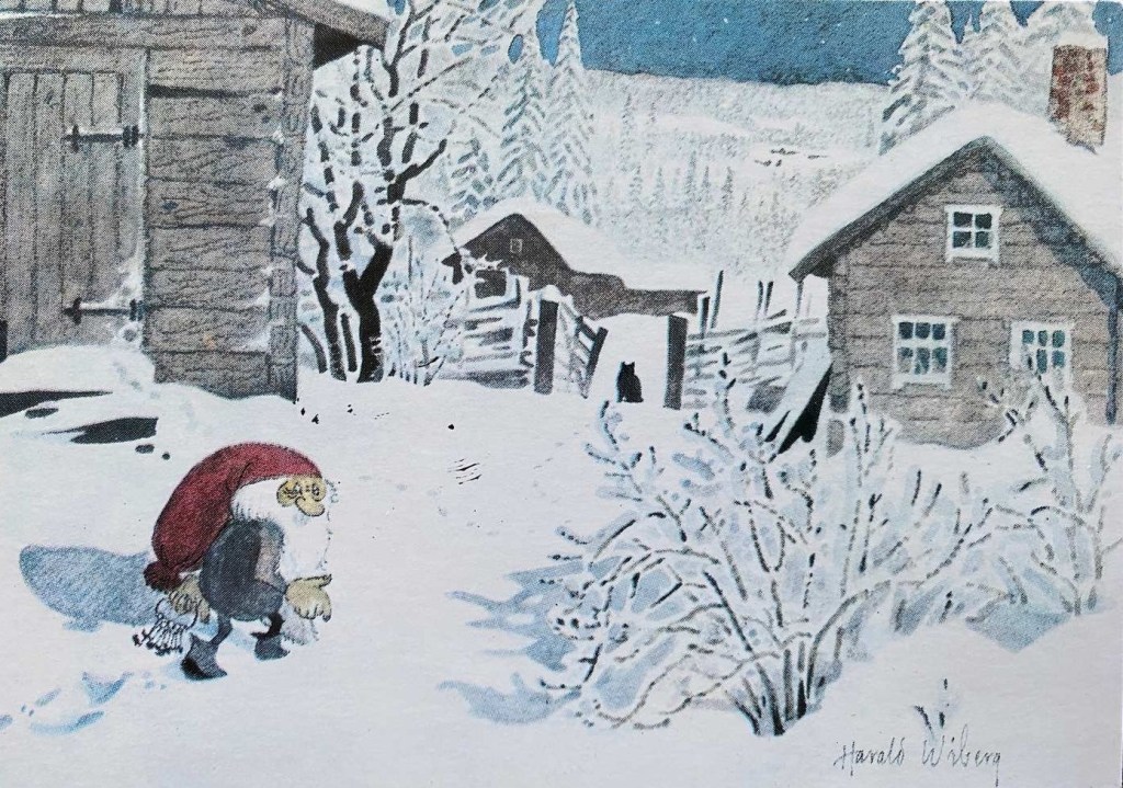 Postcards and Christmas cards based on his original watercolours were also produced, some of which were used in Wibergs Tomten book illustration: