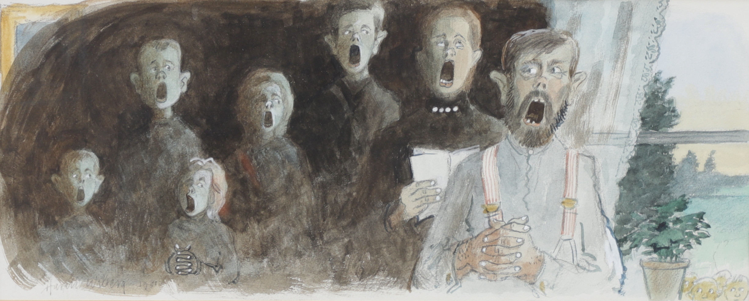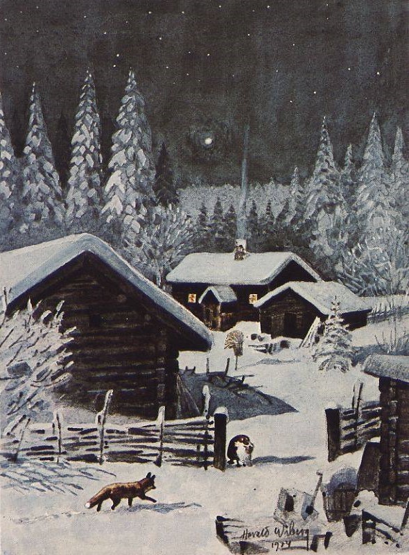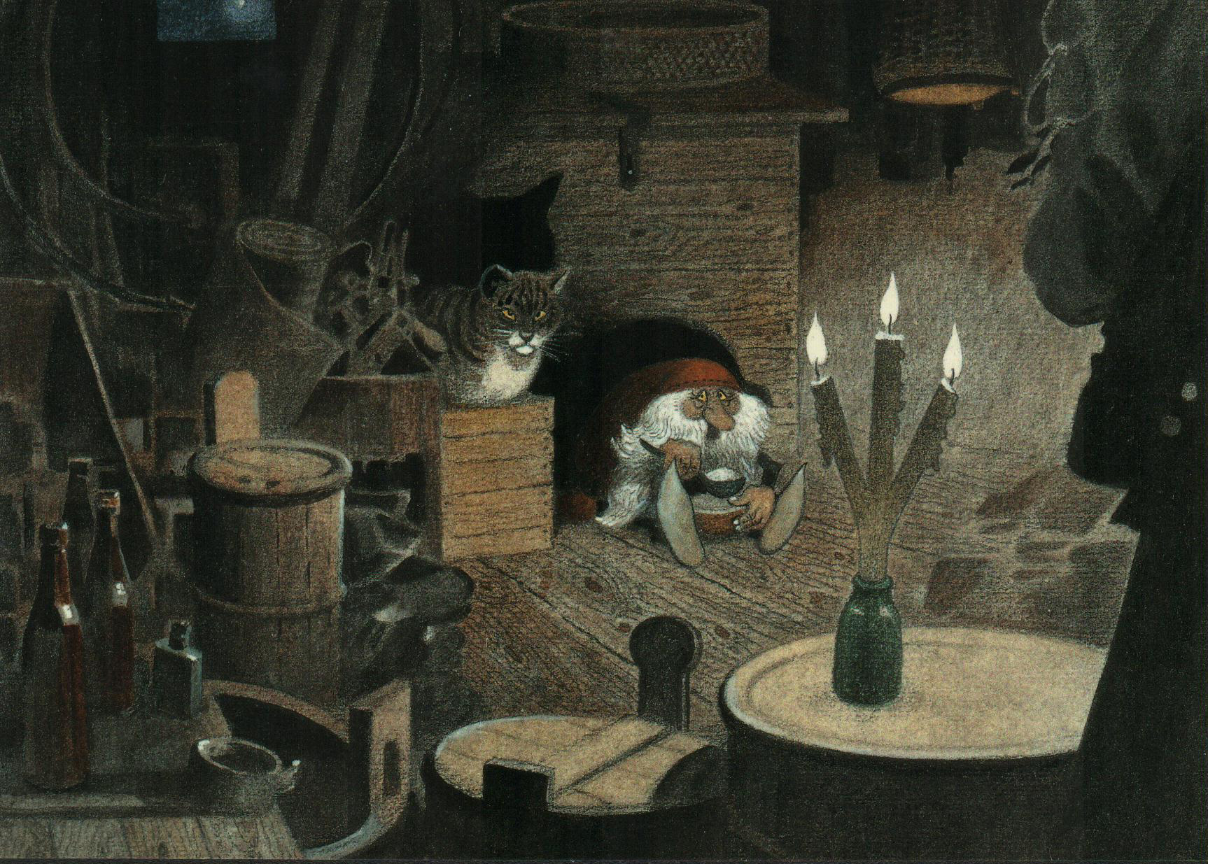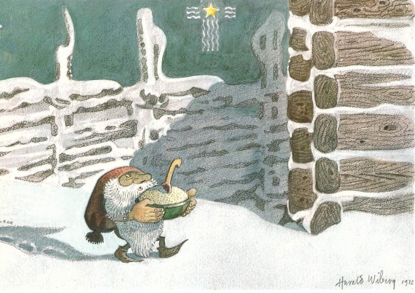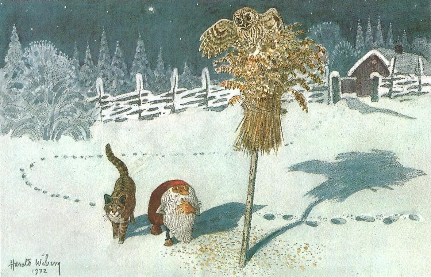 Postcards and Christmas cards based on his original watercolours were also produced, some of which were used in Wibergs Tomten book illustration: