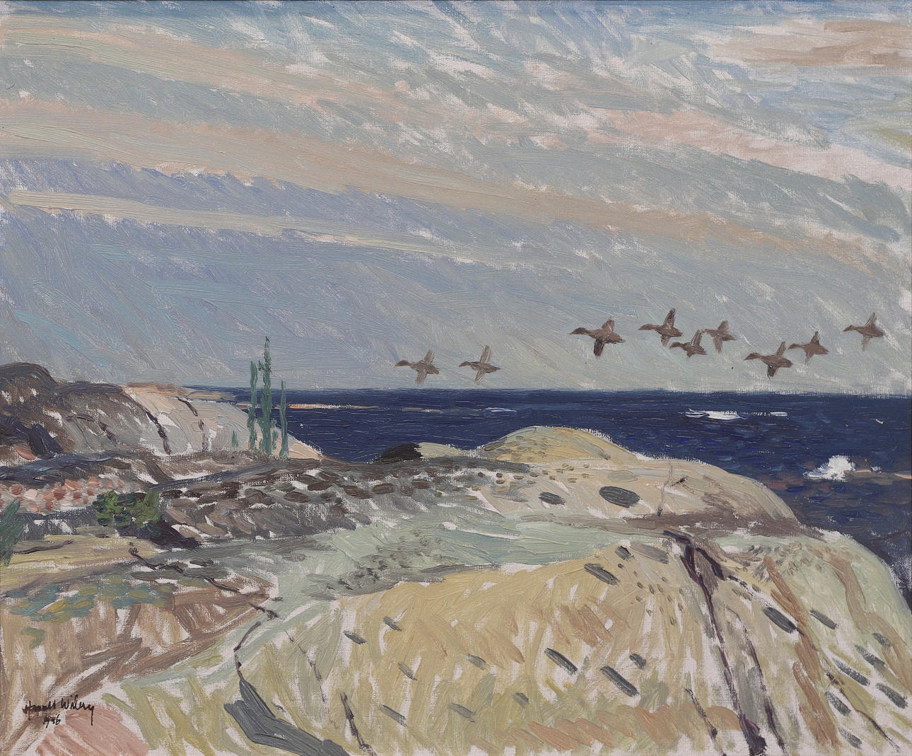 He furthered his education at Oller’s painting school in Stockholm 1931–1934. During this time he took study trips to France, Italy, the Netherlands, Ethiopia, Iceland and Finland, among others. This assisted Wiberg in honing his skills, mastering various mediums, including watercolor, oil, and pencil.