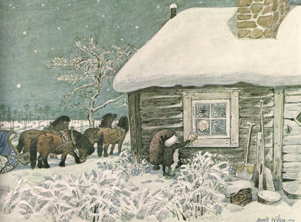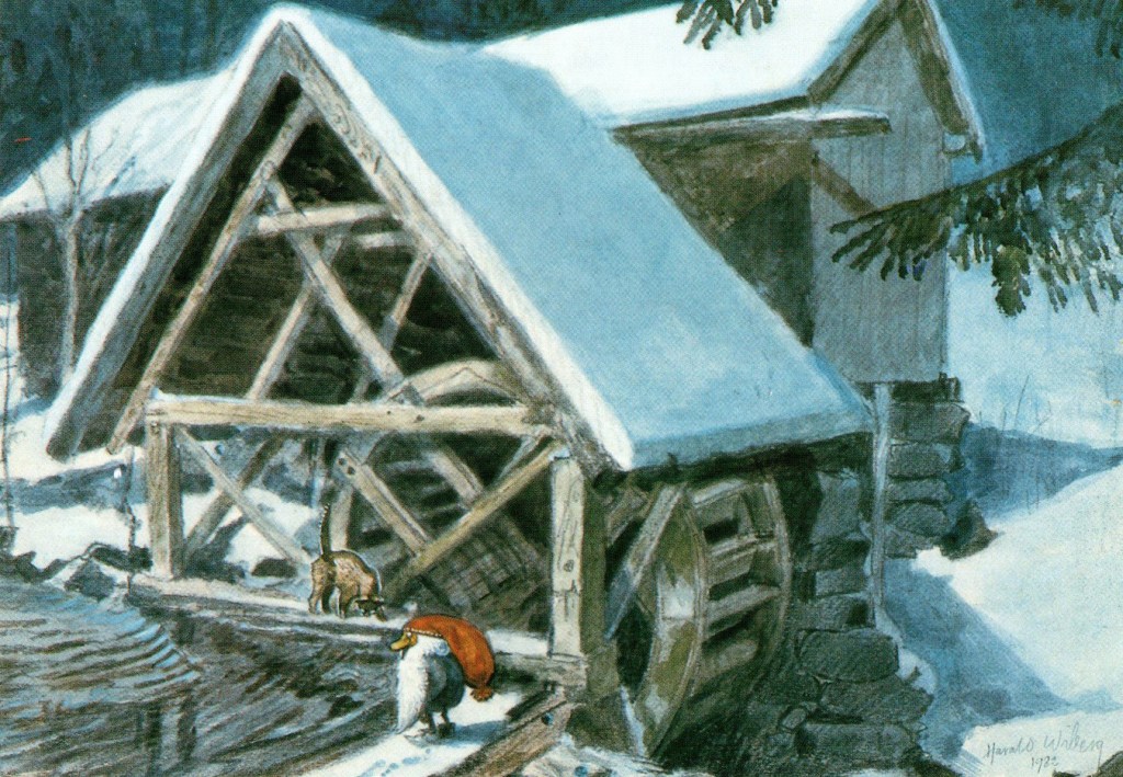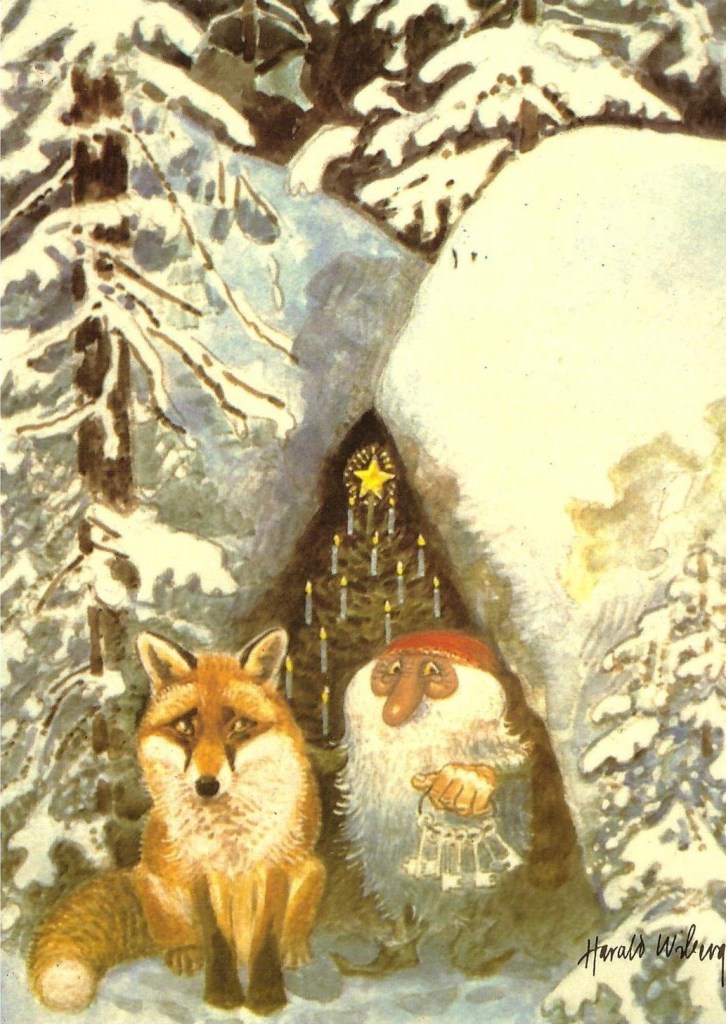 Wiberg illustrated many children’s books, and almost all of them feature Scandinavian landscapes, animals and traditional mythological characters: trolls and tomtens (called nisse in Norway).