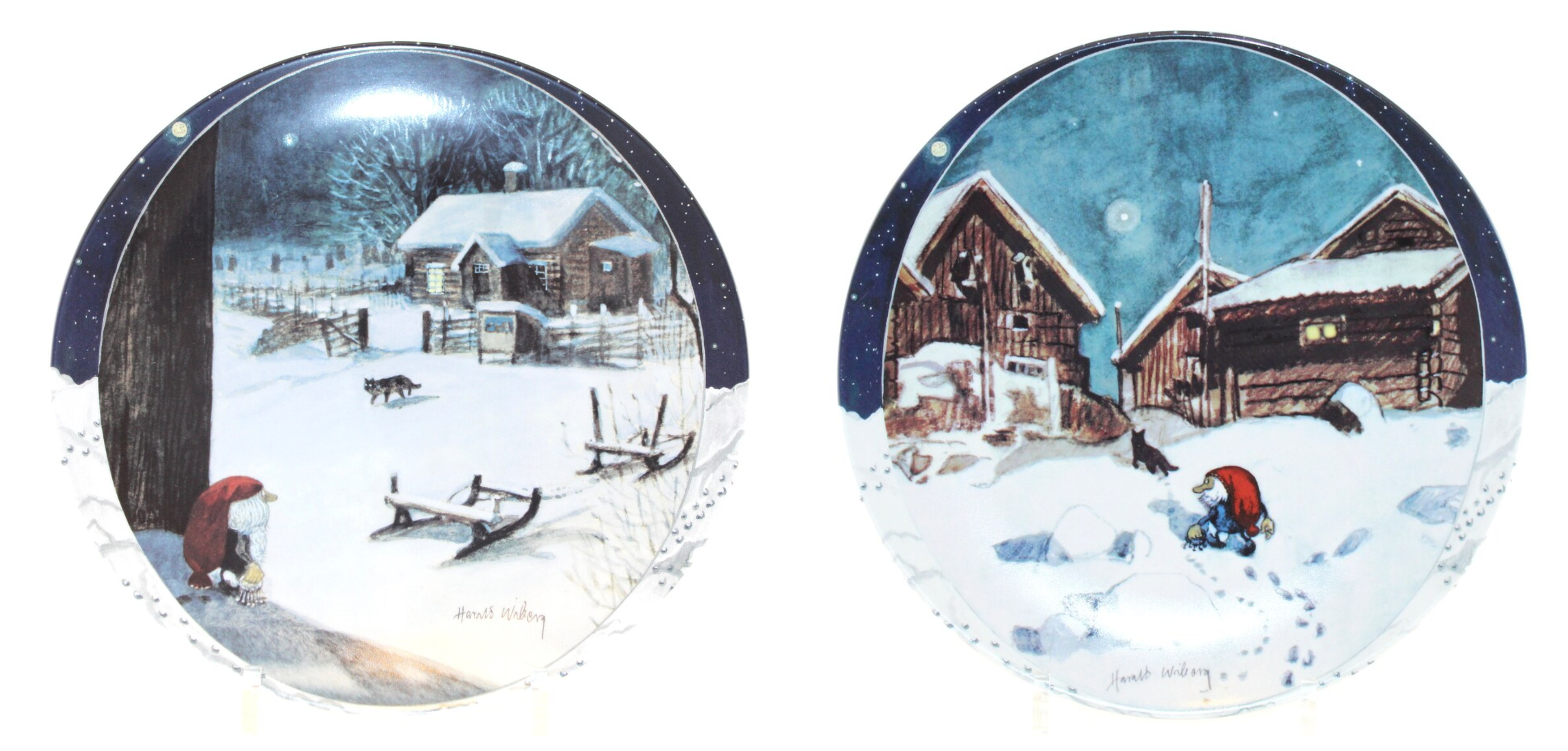 Harald Wiberg’s artistic talents extended beyond book illustrations, leading to notable collaborations with prestigious Swedish and Danish companies. These partnerships allowed Wiberg to apply his exquisite depictions of Scandinavian wildlife and folklore to fine porcelain and glassware, creating collectible pieces that blended art with functionality. His designs, often featuring the beloved Tomten and other elements of Swedish nature and wildlife, brought a touch of enchantment to everyday items. These collaborations not only showcased Wiberg’s versatility as an artist but also helped to preserve and celebrate Nordic cultural heritage through beautifully crafted homeware.