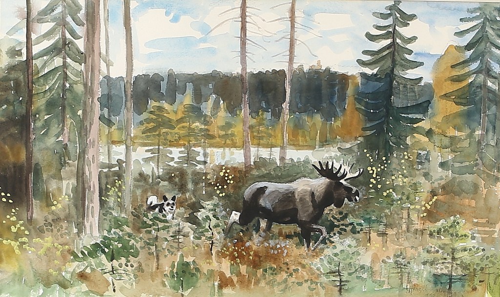 ink and pencil drawings. He made a name for himself as an illustrator in a series of books on animals, hunting, fishing and outdoor life and has illustrated around 20 books on these subjects. He also illustrated many children’s books.