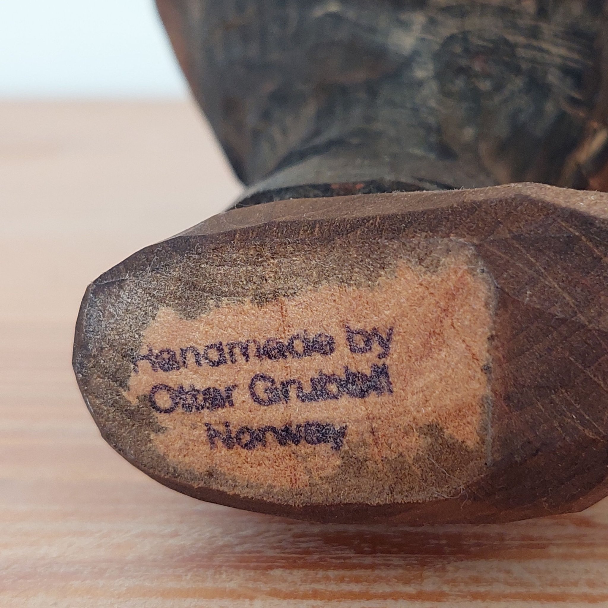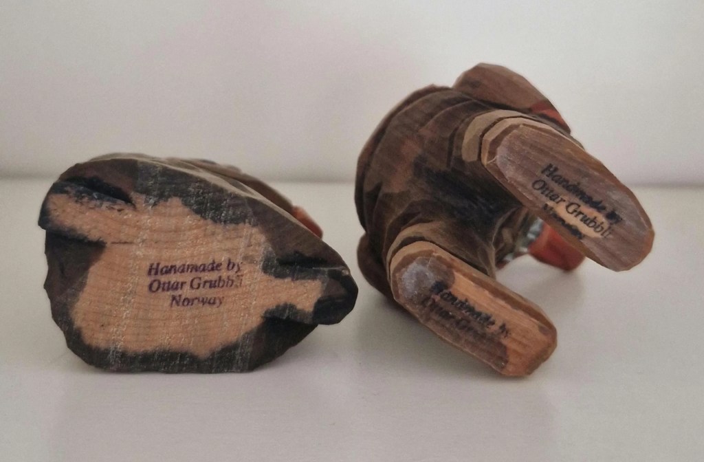 His carvings are most commonly stamped “Handmade by Ottar Grubbli Norway“, however, some carvings also bear his full name in pen.