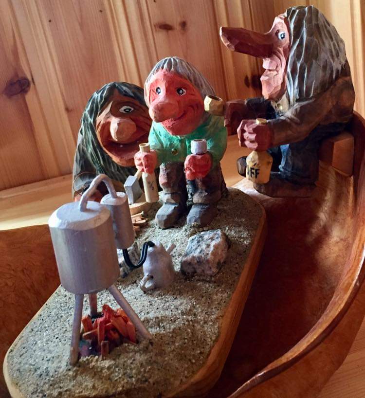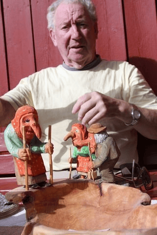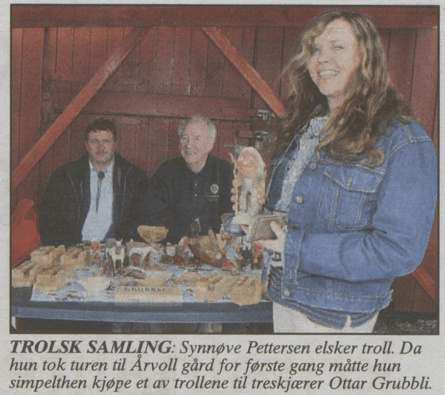 They were always seated with all kinds of homemade goods. It was mostly moose, nisse and trolls Ottar carved in the workshop on their farm, while Bjørg painted and decorated them. “We spend a lot of time making the different items, up to three days. I’d say we’re a really good team,” Bjørg and Ottar say with a smile (Source: Aker’s newspaper Groruddalen, Friday June 18, 2010).