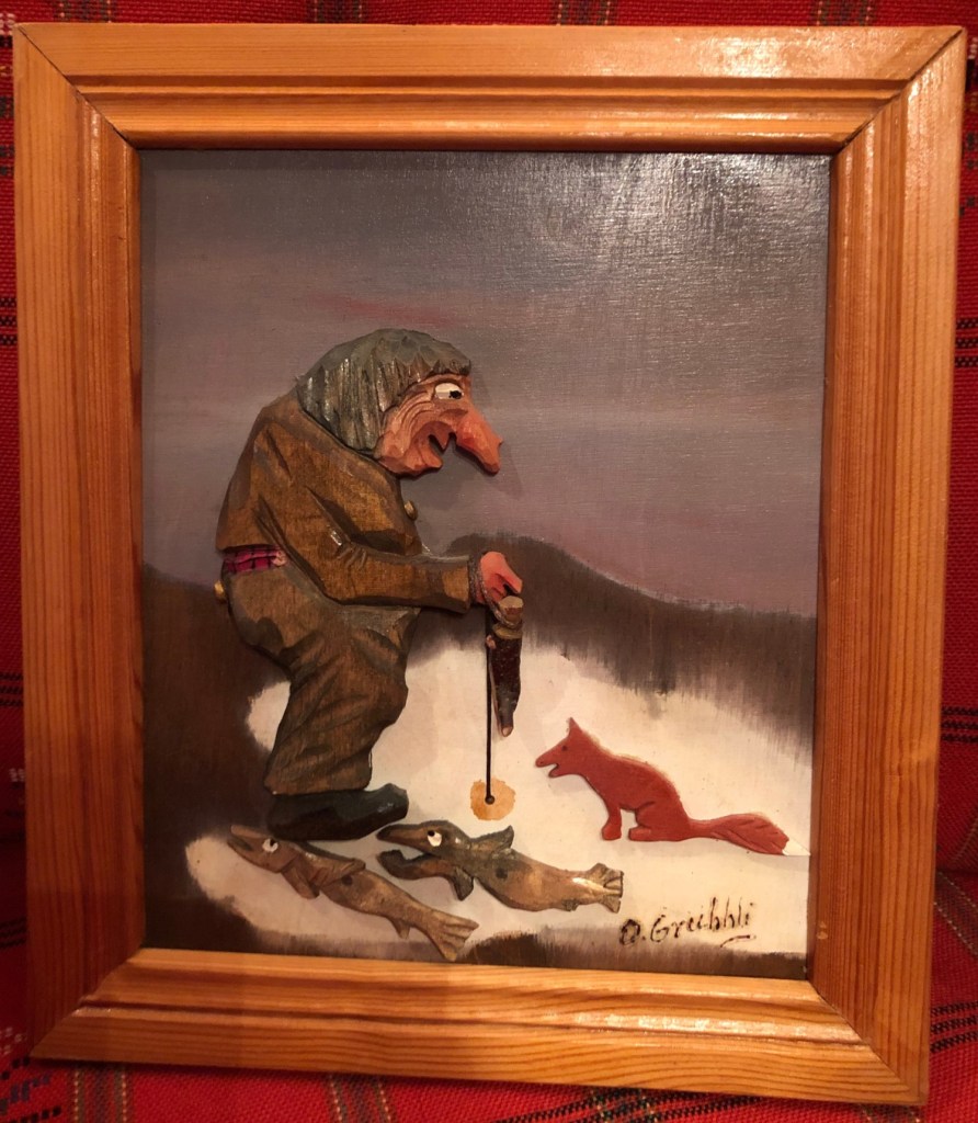“This is my hobby. Woodcarving is very relaxing. I started at a young age—my mother was a woodcarver, so I learned it from her,” he says. In 1998, Grubbli pursued his hobby in a former sausage stand which he rented at Brobekk (Source: Akers Avis Groruddalen, Wednesday, December 2, 1998).