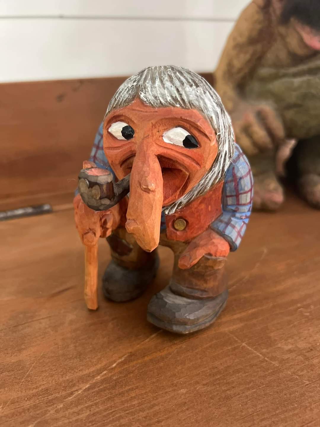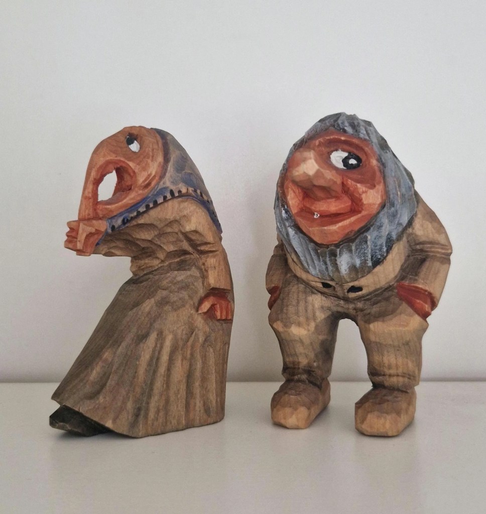 One of the distinctive features of Ottar Grubbli’s trolls is their unique characteristics. Often, his trolls are depicted with only one visible eye, adding a touch of mystery to their appearance. Additionally, they almost always have very long thumbs, a signature detail that sets his work apart and reflects his individual artistic style.